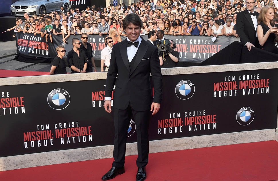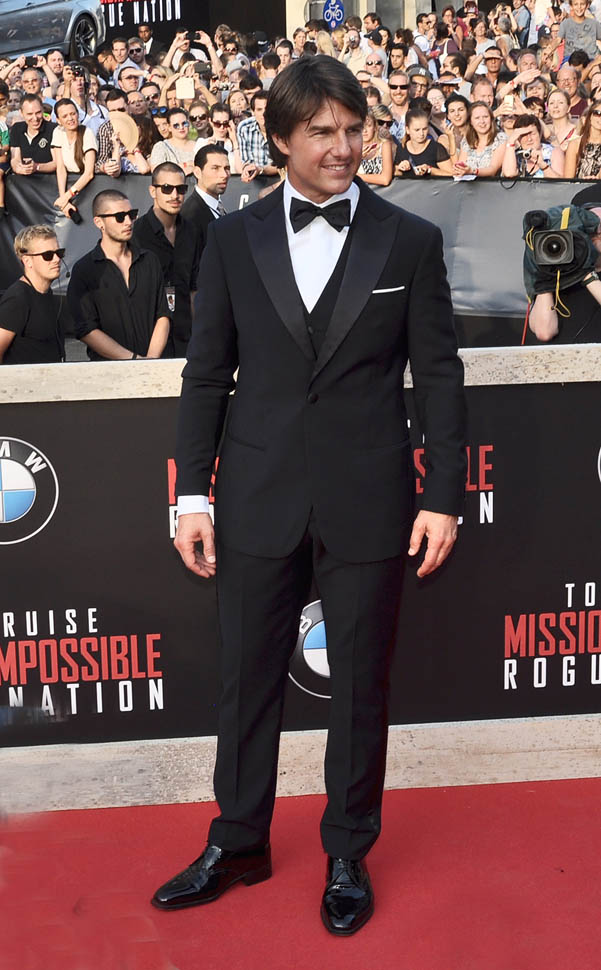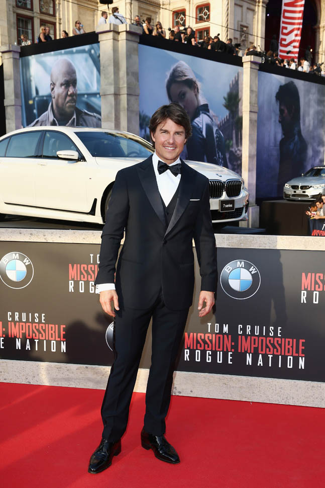 Tom Cruise wore a #GiorgioArmani Made to Measure tuxedo to last night's world premiere of ‘Mission Impossible – Rogue Nation’ in Vienna.
