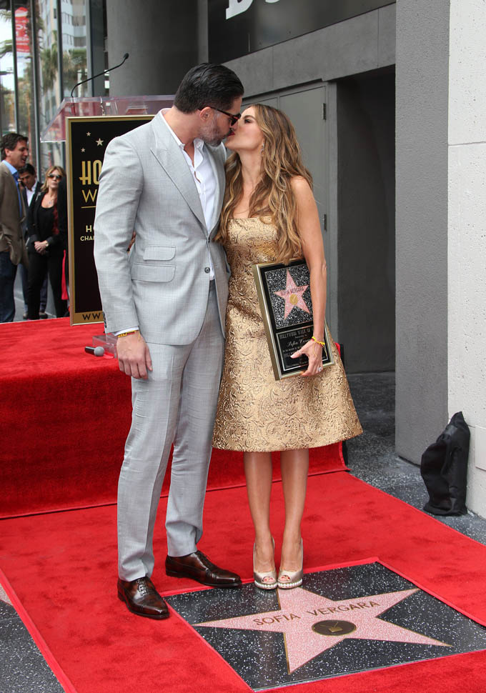 Sofia Vergara and Joe Manganiello celebrating her star on the Hollywood Walk of Fame.