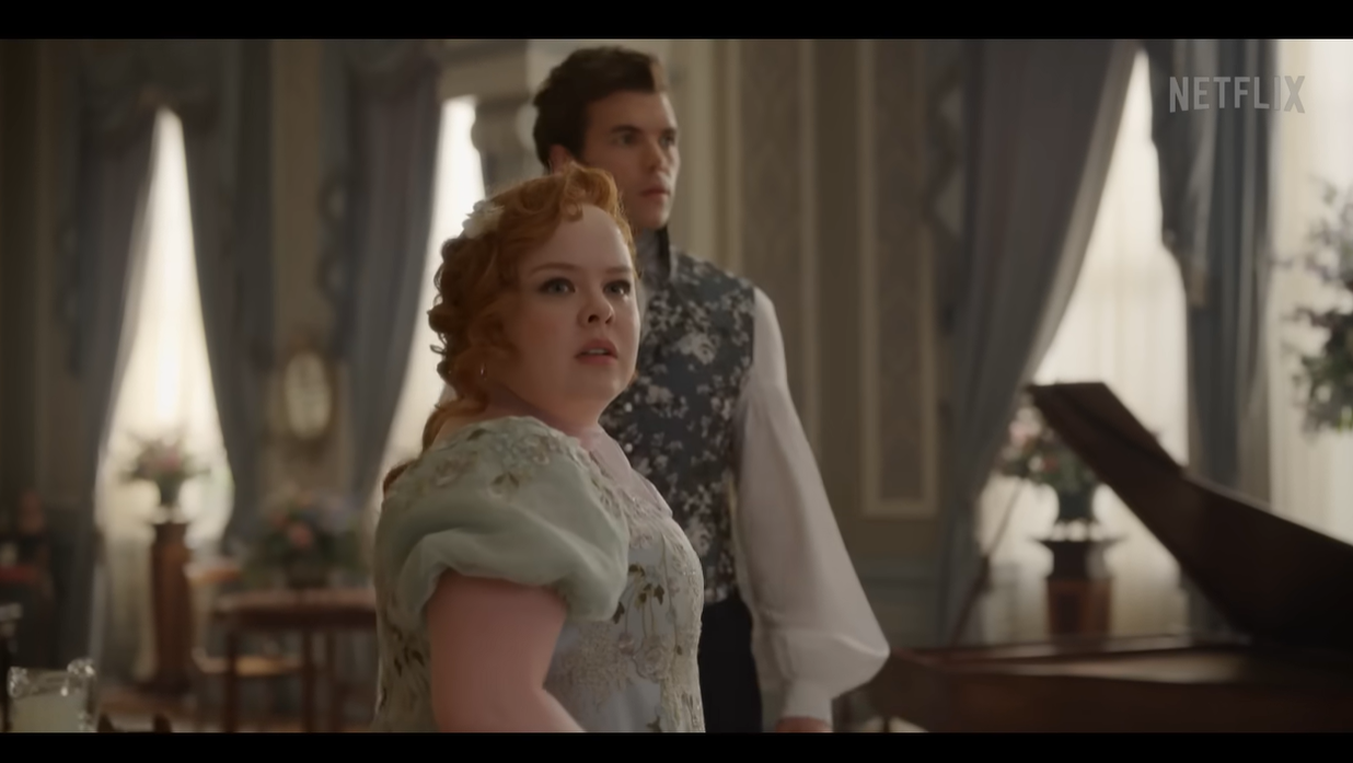 I wouldn’t mind the adjustment so much if I trusted the folks behind Bridgerton with such off-book changes, but after season two I…don’t. In and of itself, the teaser is cute, Colin looks appropriately knocked over the head by Pen being herself, he is the Bridgertons’ resident himbo and Pen’s trophy husband, there is something very Colin about the look on Luke Newton’s face as he stares at Penelope. And, of course, I love Nicola Coughlan. I’m going to watch this just for her, even if I no longer quite trust in Bridgerton to deliver the goods.
