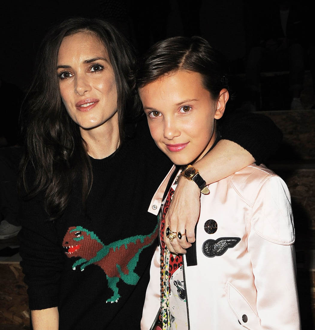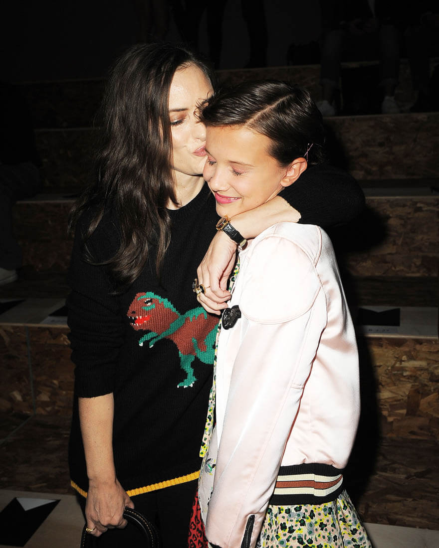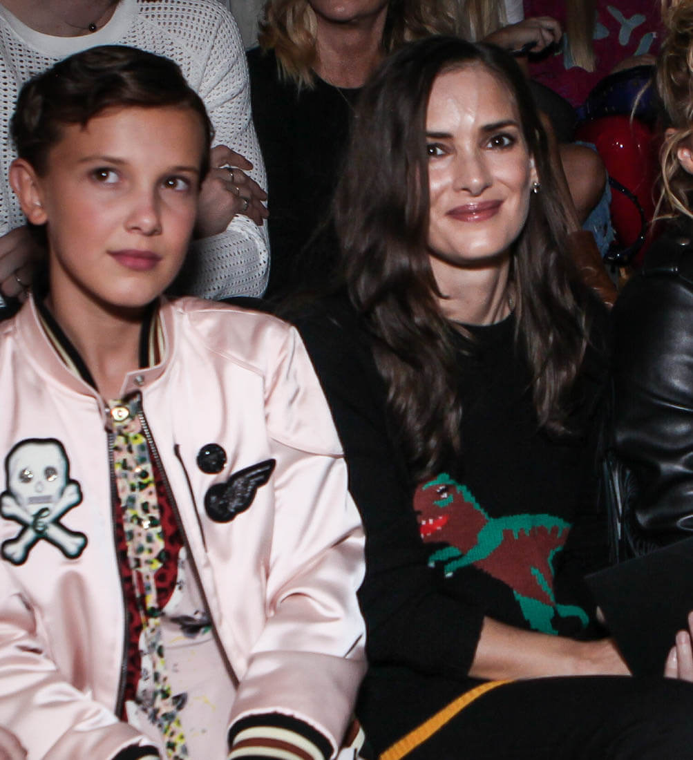 Winona Ryder and Millie Bobby Brown sitting front row together at the Coach show in New York yesterday. Since the theme of the day (see today’s intro) is feelings, my heart is bursting with so many feelings, more feelings than I knew I ever had, looking at these pictures.