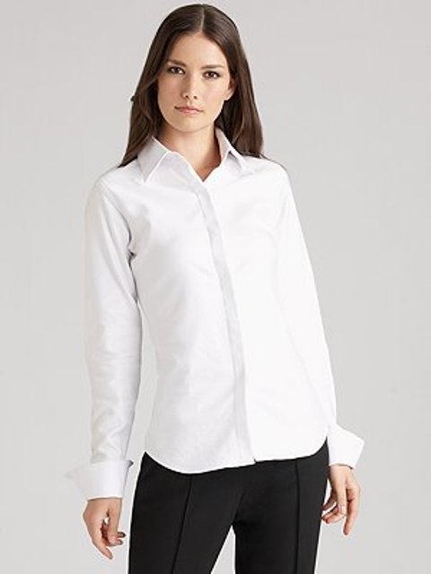 A classic white blouse is a staple every season so here’s where you could stand to invest a little. Theory and Pink Tartan are some great labels that know how to tailor. And if you lean more to the girlie side of things pick up a slightly ruffled one. Banana Republic and Zara always have a good sale rack of them. Throw a cardigan over it or dig out one of those v-neck sweaters and toss it on over the blouse.