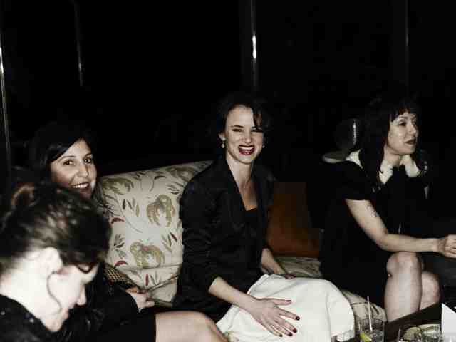 When Juliette Lewis wasn’t smoking on the patio (she kept inching inside with her cigarette) she was at the bar, for a while at least, talking to Quentin Tarantino. Can’t even imagine what that conversation would have sounded like. She wasn’t wearing anything weird either. No crazy spandex, no head ornament, just a black jacket with red lips. She’s actually quite tall. I mean we were all in heels. And she was taller than most. Fun and loopy though. Very loud, definitely a party girl, ready for it at a moment’s notice.