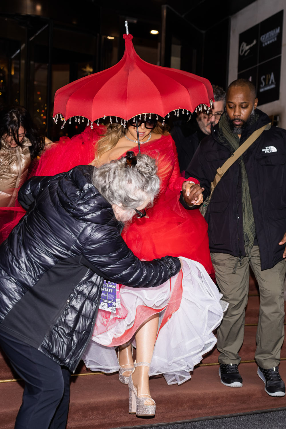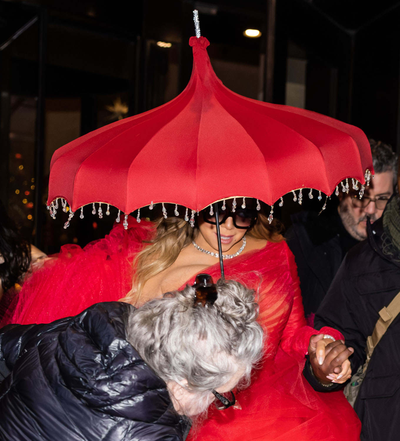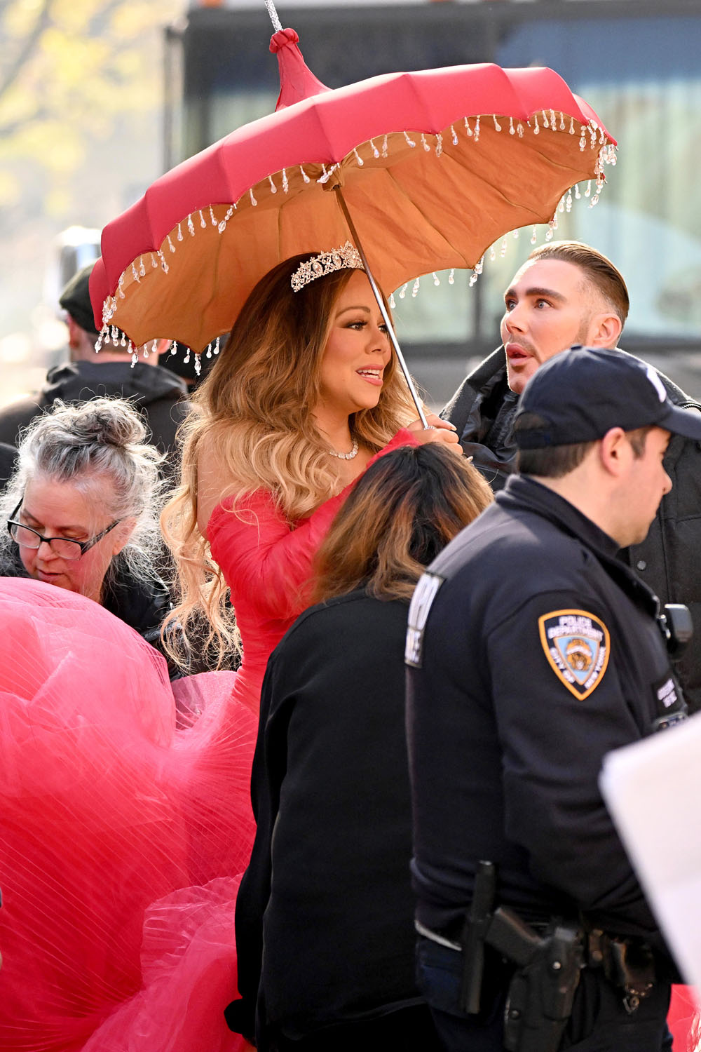 It’s now November 25th, exactly a month from Christmas and the Queen of Christmas (in culture if not in copyright) was at the Macy’s Thanksgiving Day parade yesterday, closing out the show and kicking off the one-month countdown by performing the song that has made her immortal, “All I Want for Christmas Is You”. Mimi was joined by dembabies, Monroe and Moroccan, and she wore a tiara and 80 carats of diamonds and a red mermaid dress and lip-synched, which some people took exception to.