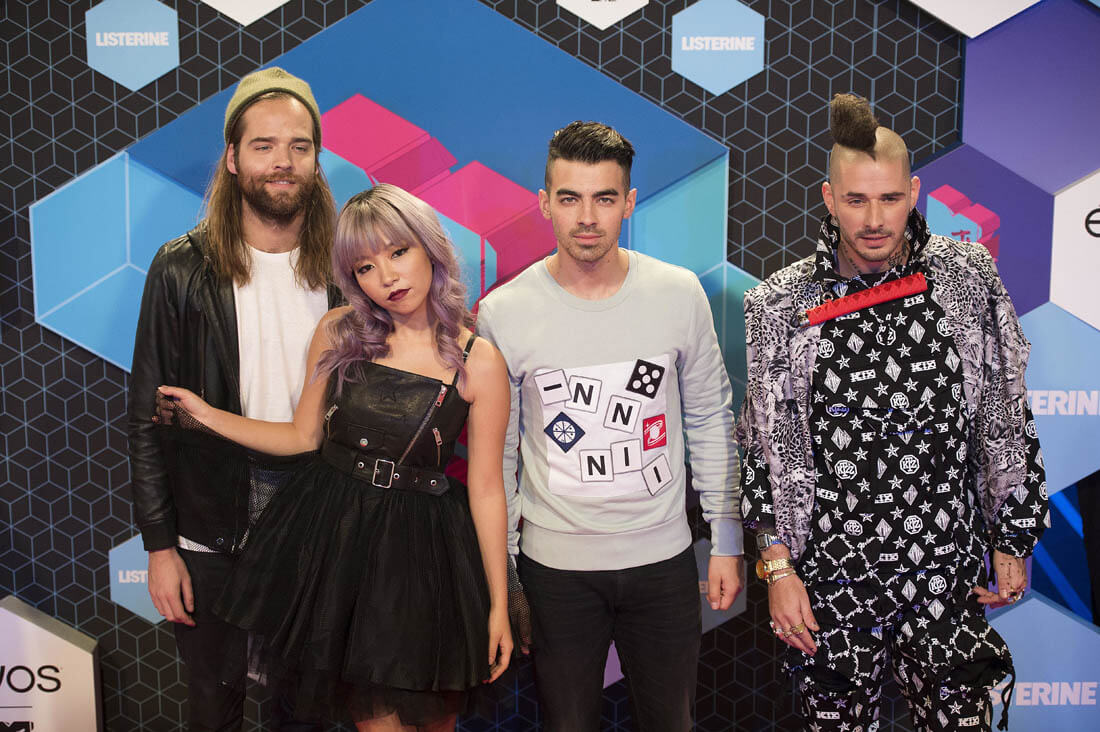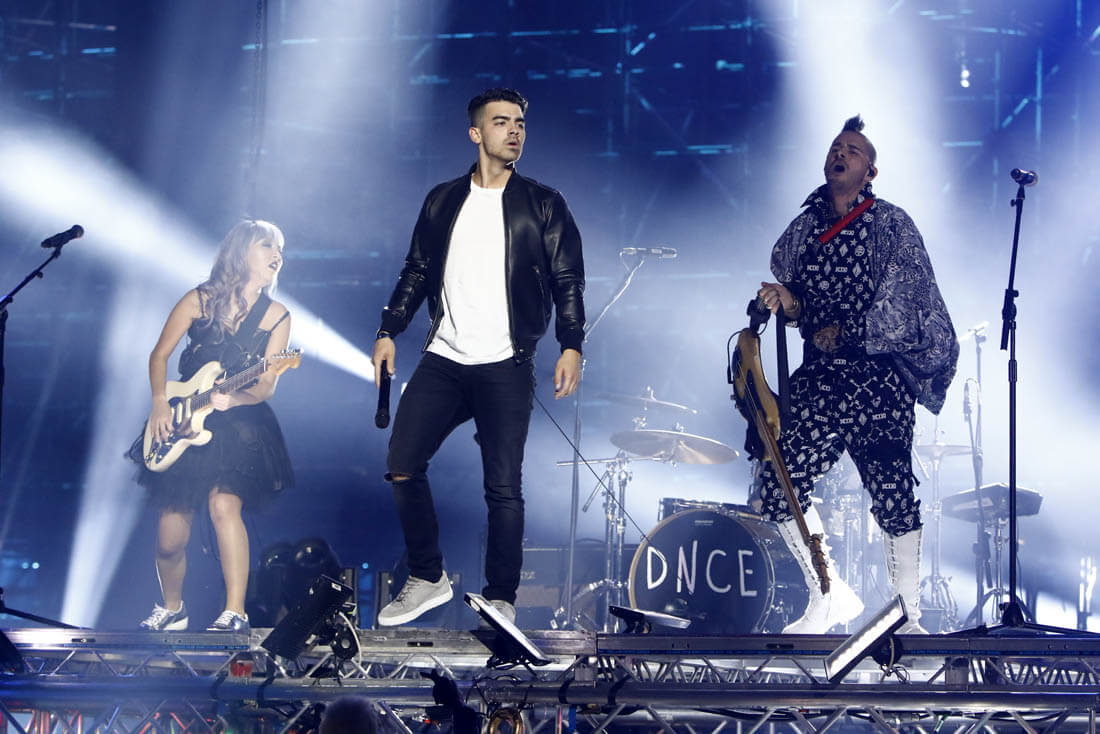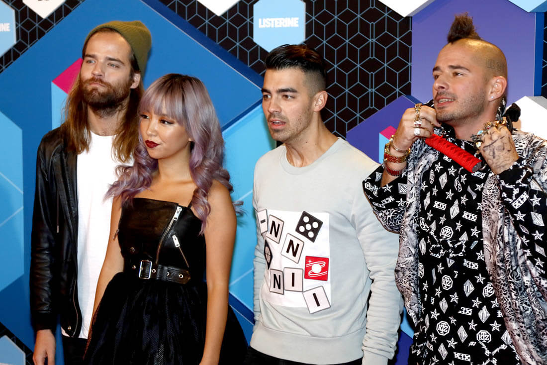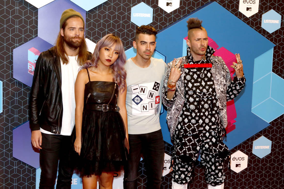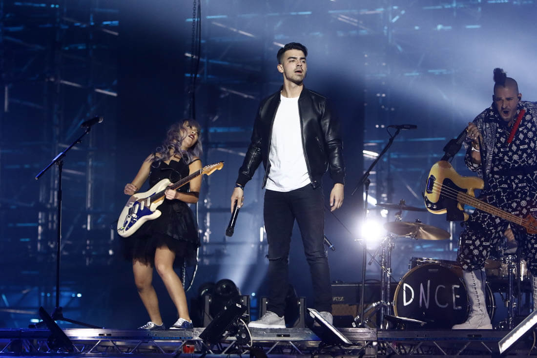 Here's Joe at the European Music Awards with DNCE yesterday and Sophie out in Paris for Fashion Week last month.