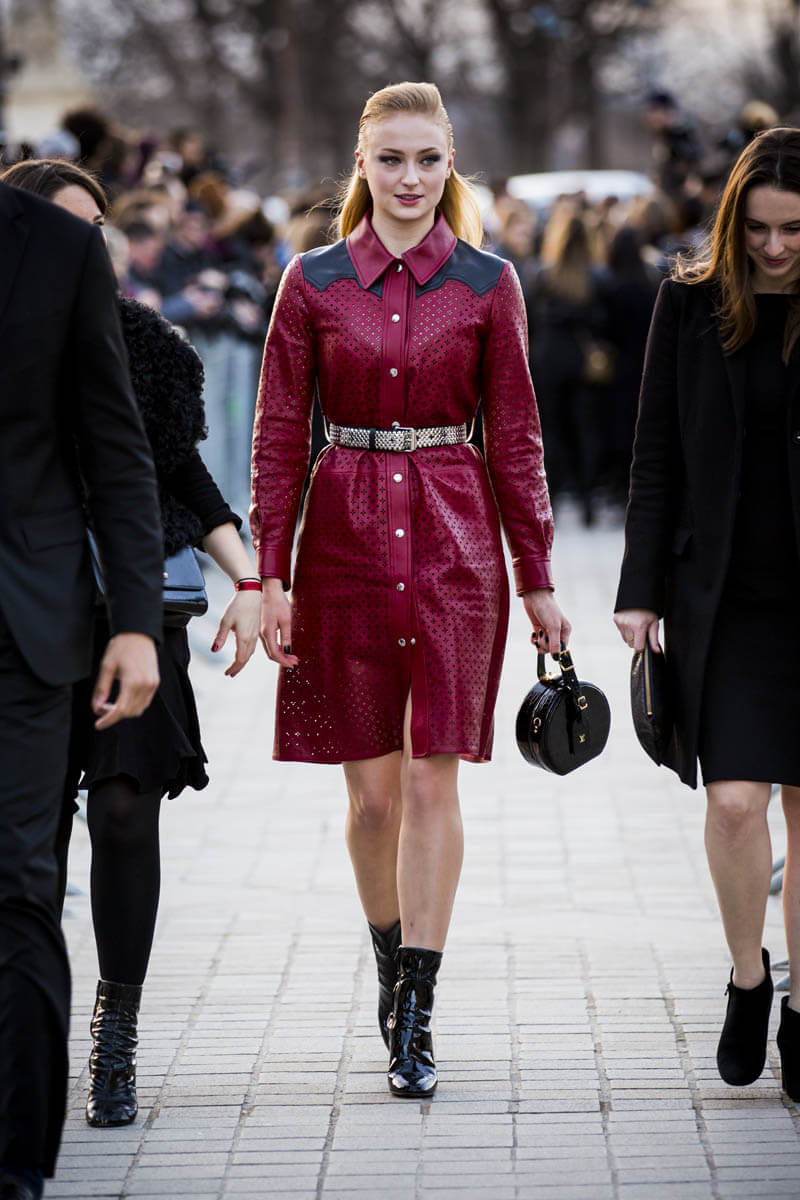 Sophie Turner’s been repping Louis Vuitton for over a year now and she was there for LV’s Fall/Winter 2018 presentation in a gorgeous red leather shirt dress. But it’s not just Paris Fashion Week – Sophie’s been AROUND. She was seen a lot in New York in January and February. Now she’s in Paris. So…