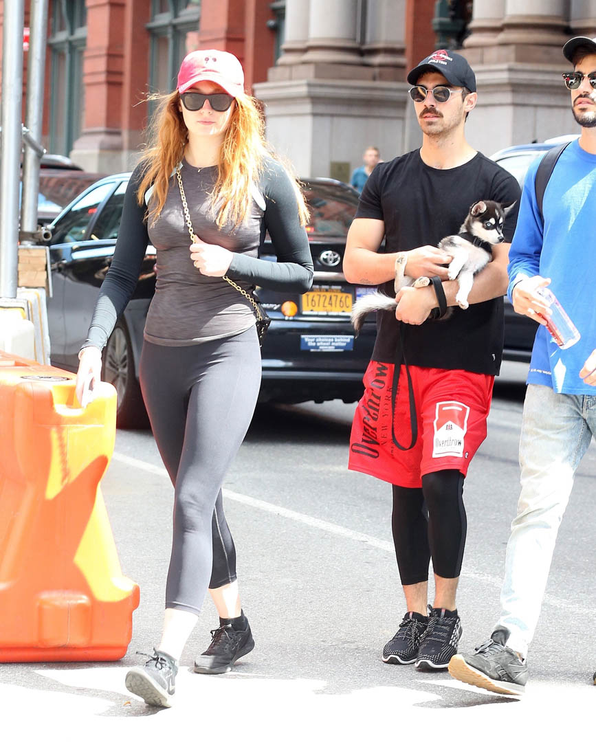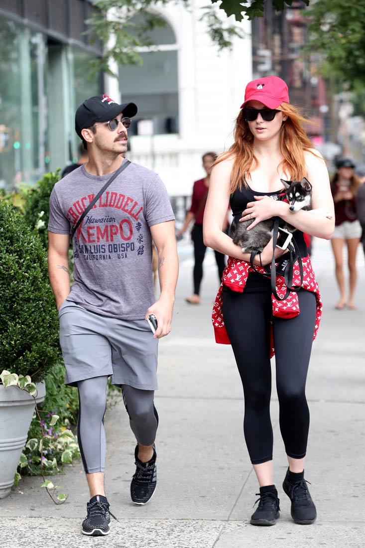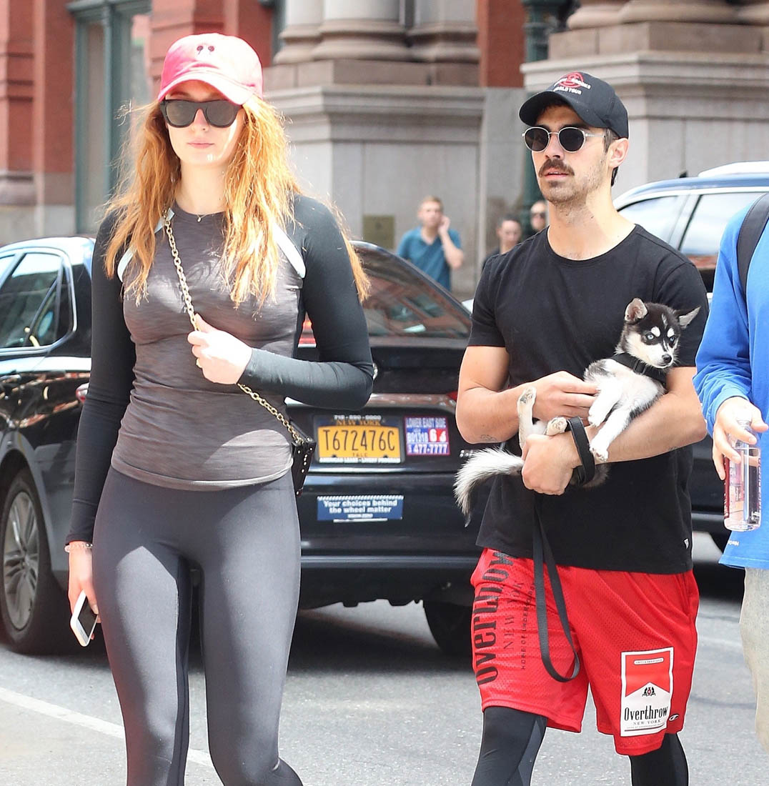 Sophie Turner will be back in her Sansa Stark capes running Winterfell while Jon Snow does dumb sh-t when the show picks up filming again in October. Until then, I’m assuming she’ll be hunkered down with her new pup and her boyfriend’s dirty ‘stache. Can you own a dog with someone you don’t live with? If Sophie and Joe do live together, that means they’re serious enough for Sophie to sit Joe down and have a stern talk about this new style.