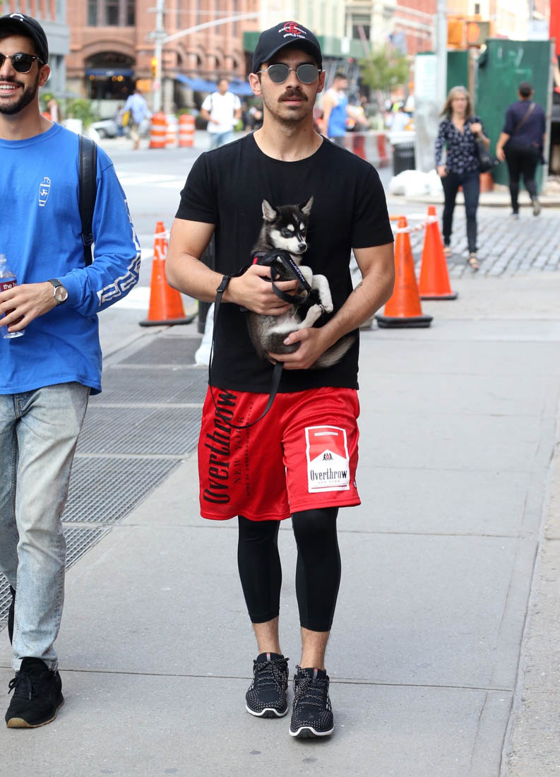 Porky can stay. Joe Jonas’s mustache has got to go. There were a few questions that came to mind when I saw these photos and the biggest one was, “what is going on with Joe’s aesthetic?” He looks like a hipster Tom Selleck going to a crossfit class. Is he wearing workout tights under his shorts? My partner does this to go running and it’s embarrassing. Is Joe going for a run? Who wears a cross body bag to go running? Sophie is also in workout gear. Who takes their puppy to the gym? WHAT IS GOING ON? I have just as many questions about these photos as I do about the final season of Game of Thrones.