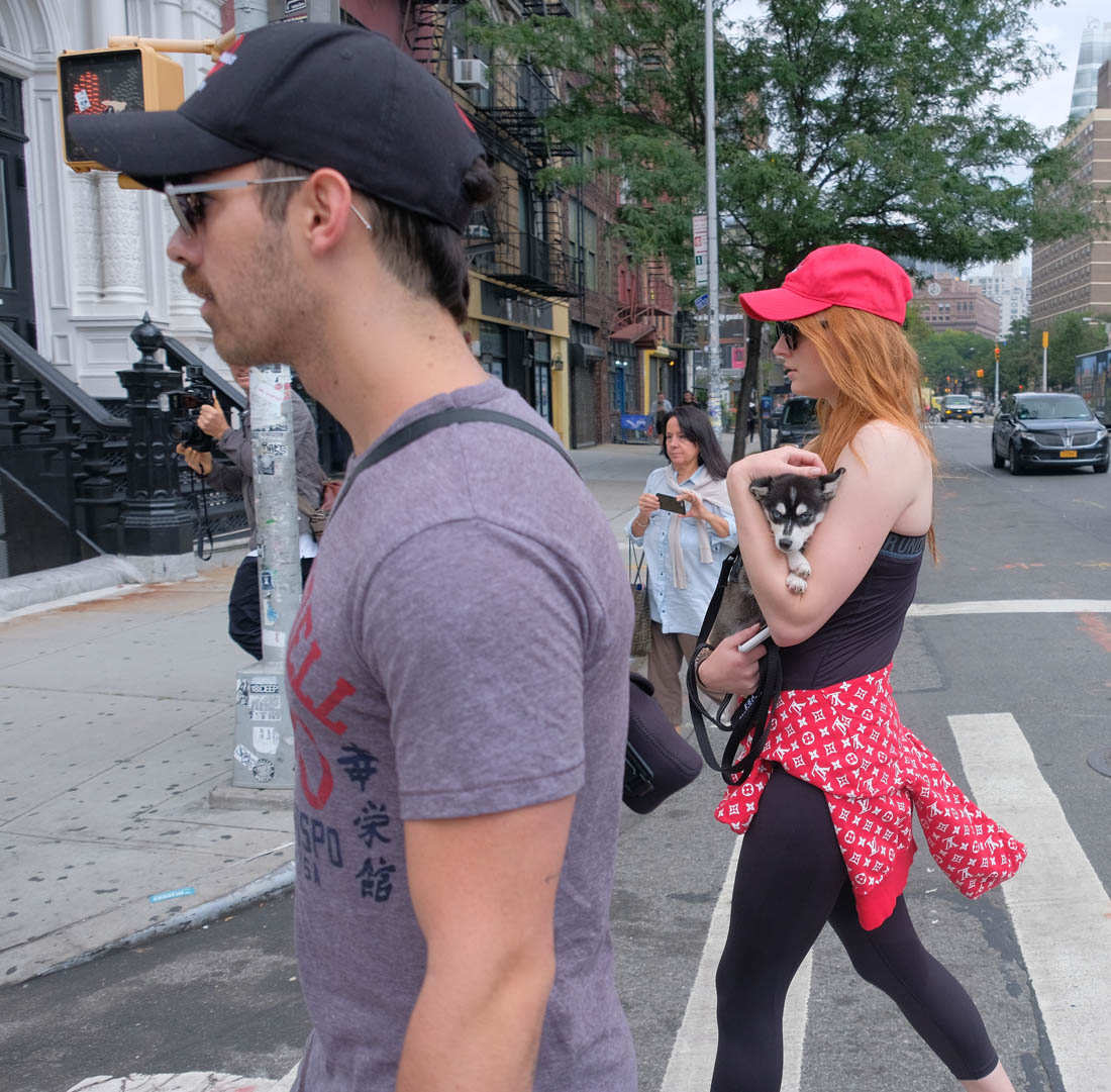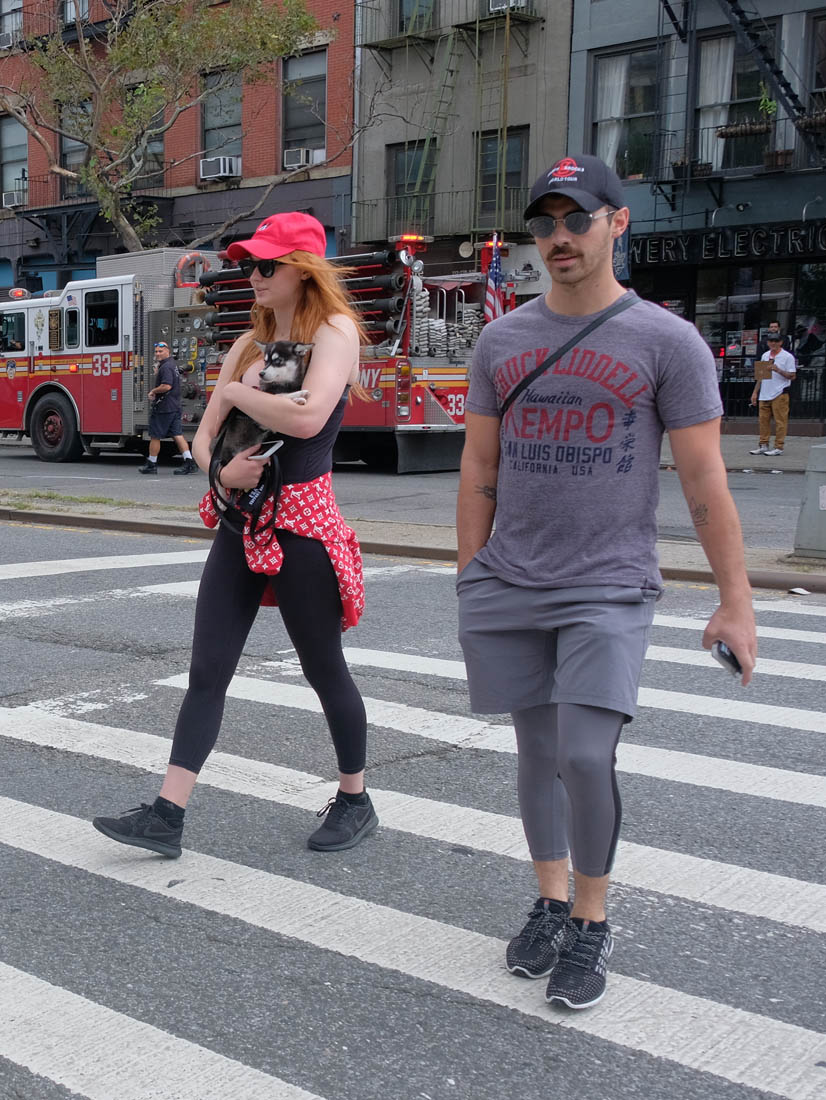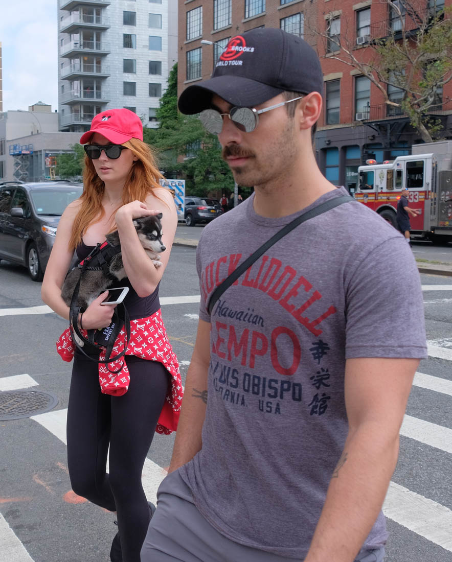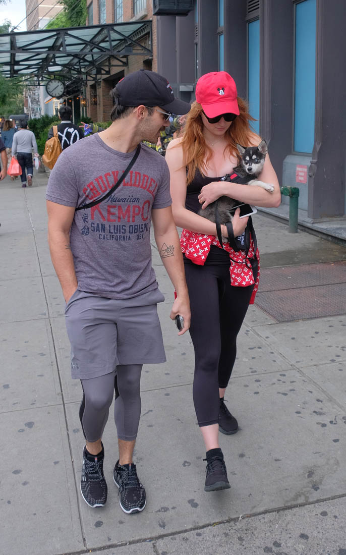 Here are new photos of Sophie Turner and Joe Jonas out in New York City with their adopted Siberian Husky puppy/ direwolf named Porky Basquiat. Sophie Turner and Joe Jonas really want us to know that they know who Jean-Michel Basquiat is.