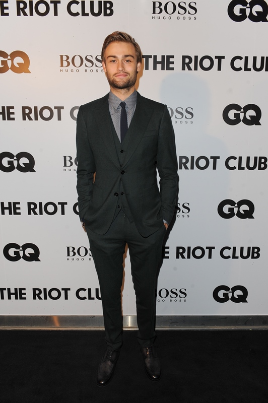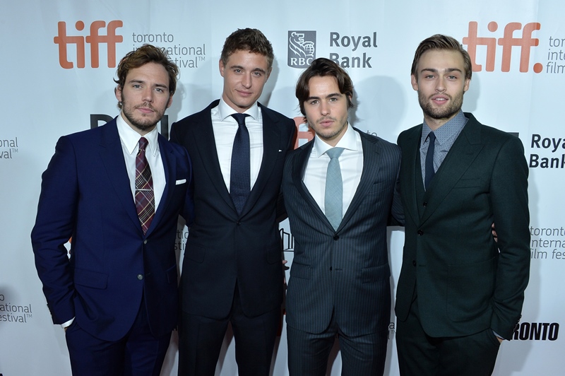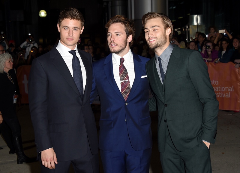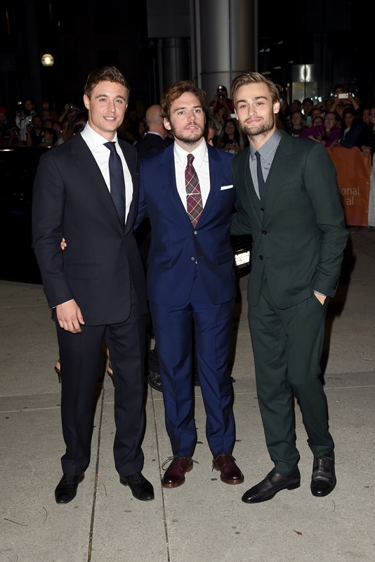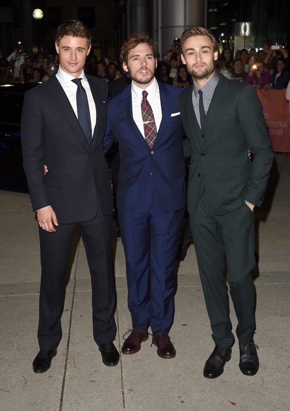 Last time we looked at Miles Teller, who is here to promote Whiplash. This time it’s three at a time: Max Irons, Sam Claflin, and Douglas Booth, members of The Riot Club, all popping up at TIFF to promote the film. It’s a secret society. It’s privilege and it’s entitlement. It’s a LOT of British boys…and they invaded the festival this weekend, wearing the hell out of their suits, like only British boys can do. I know this because I was there, spent practically an entire day with them – on the carpet on Saturday night, at the Hugo Boss after-party later on, and the next day in the etalk TIFF lounge. Oh My God, Douglas Booth is pretty up close. Pretty like in a Matt Bomer way in that there is exactly nothing wrong with his face.