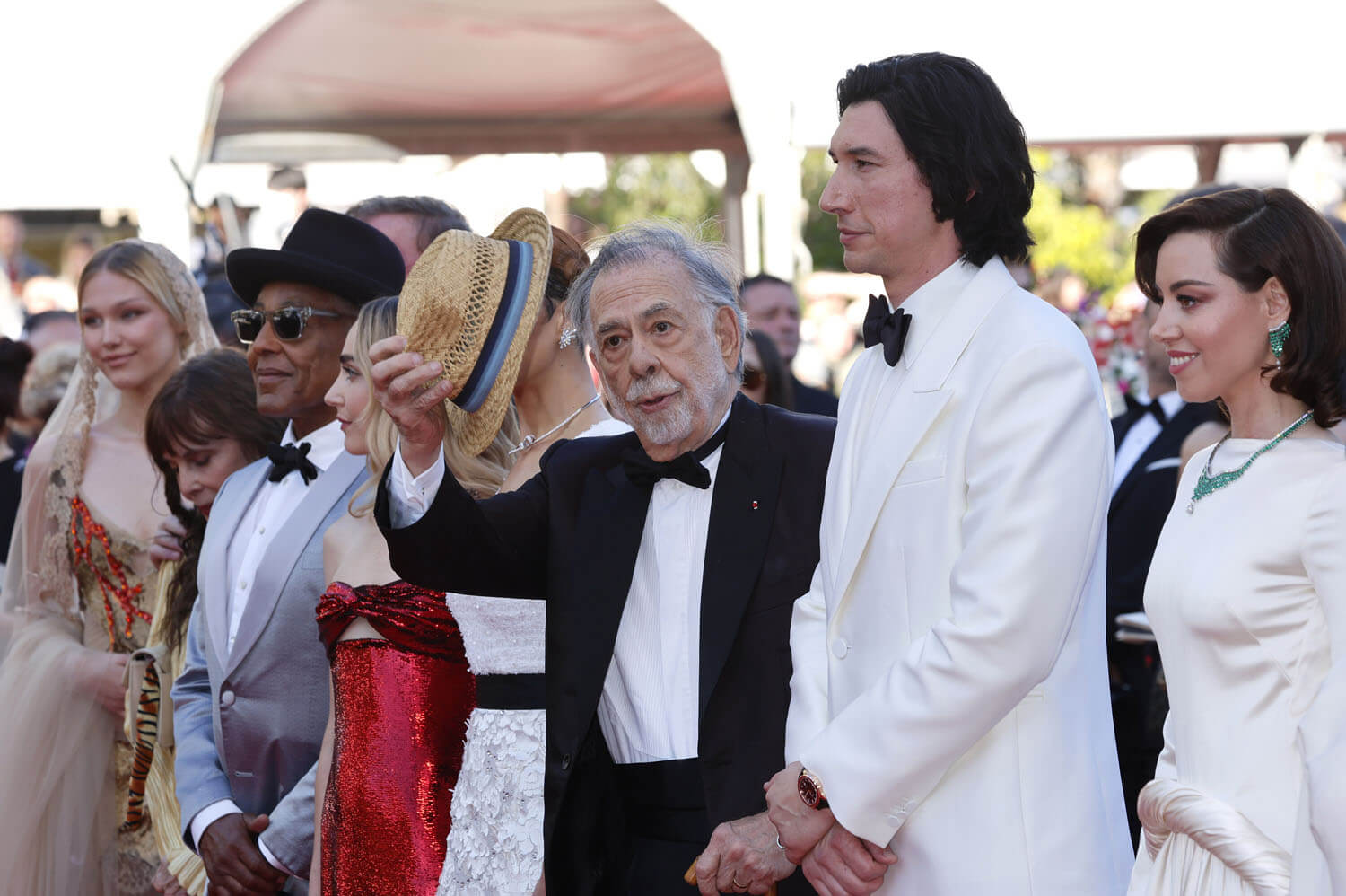 The cast turned out, though, led by Adam Driver. Frankly, I was hoping for a weirder outfit from Aubrey Plaza, but she kept it old school Hollywood with a white satin gown and emeralds, though the rolled dropped waist on the gown is a nice touch. Nathalie Emmanuel looks great, as do Laurence Fishburne and Giancarlo Esposito, and I like Grace VanderWaal’s veil. Normalize veils as an accessory! Chloe Fineman, though, is underwhelming (she often is, she is not as much of a fashion girly as she thinks she is). Then there’s the problematic contingent of the cast: Jon Voight and Shia LaBeouf. After remembering about Victor Salva, I am not surprised Coppola cast LaBeouf.
