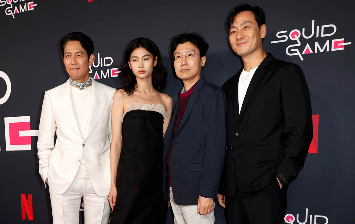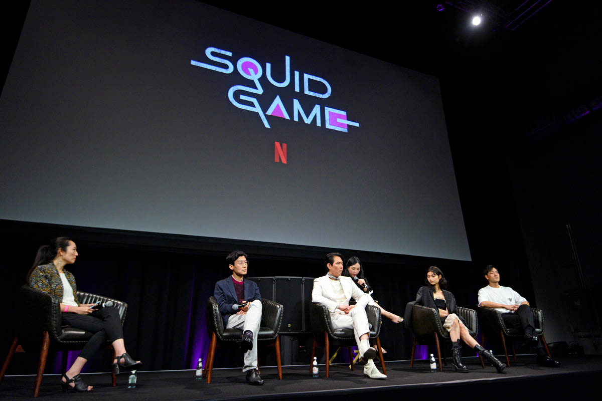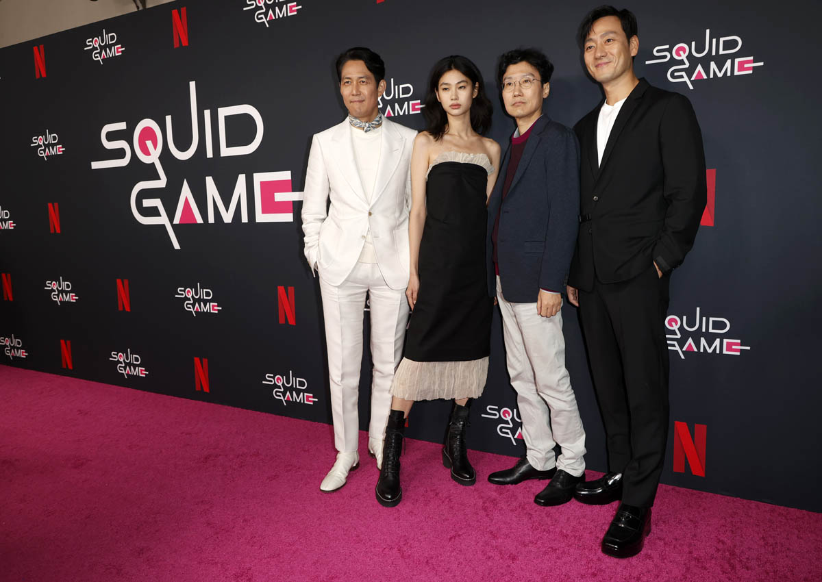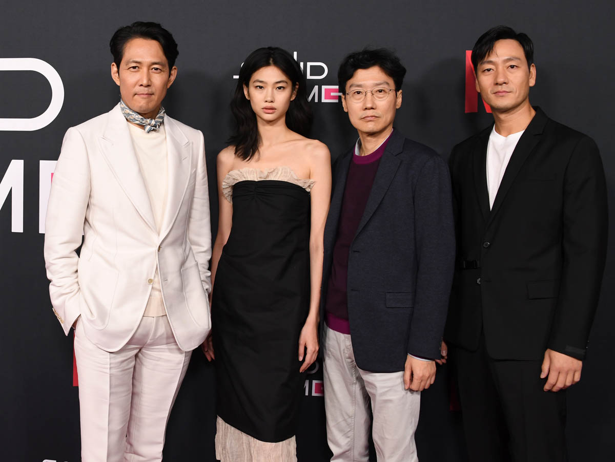 Squid Game’s creator Hwang Dong-hyuk and his cast attended the LACMA gala a few days ago. Last night he and the show’s three leads, Lee Jung-jae, Park Hae-soo, and Jung Ho-yeon were at a special screening event and Q&A in LA, 100% a campaign stop to amplify the series’ chances at PGA, Critics’ Choice, and SAG nominations.