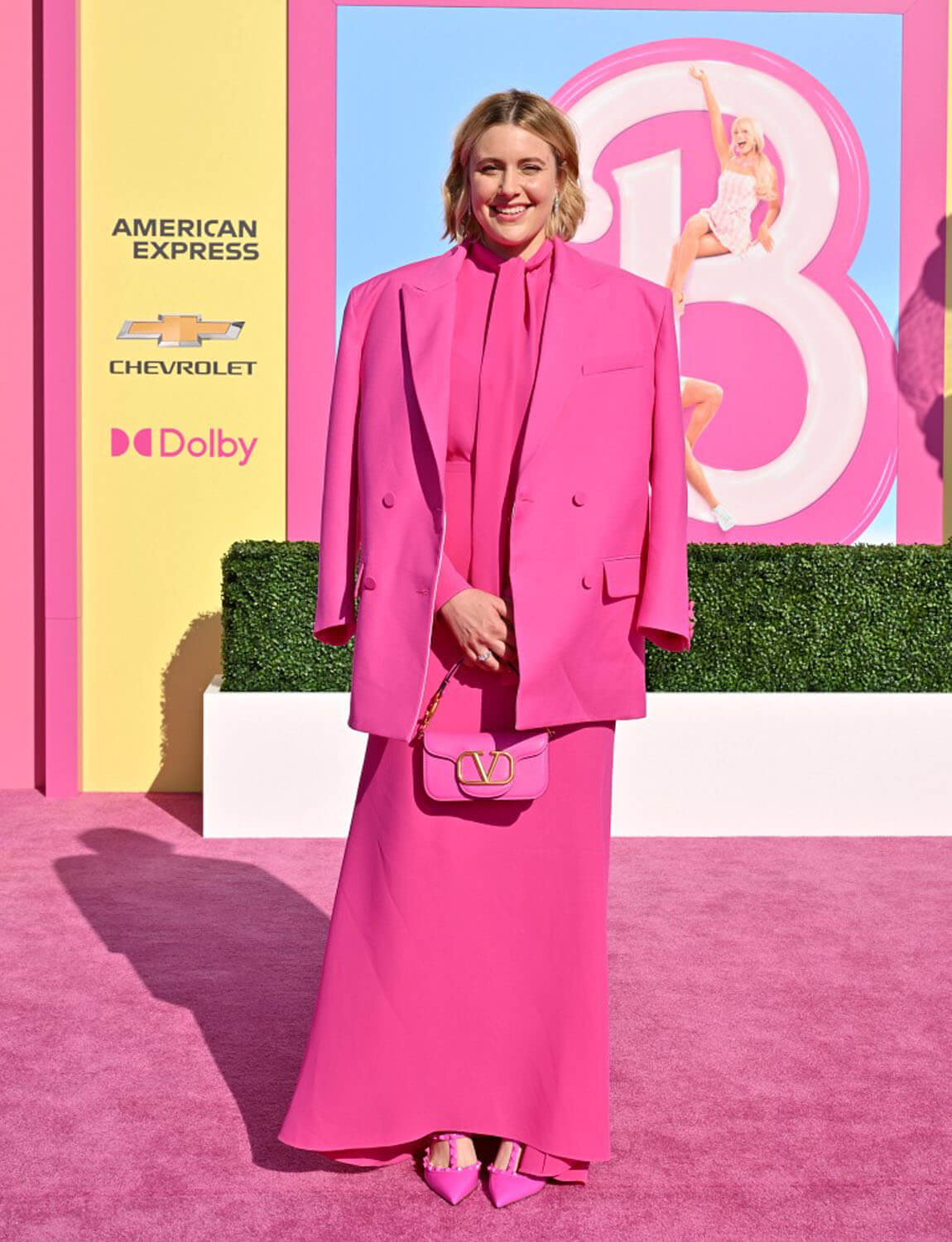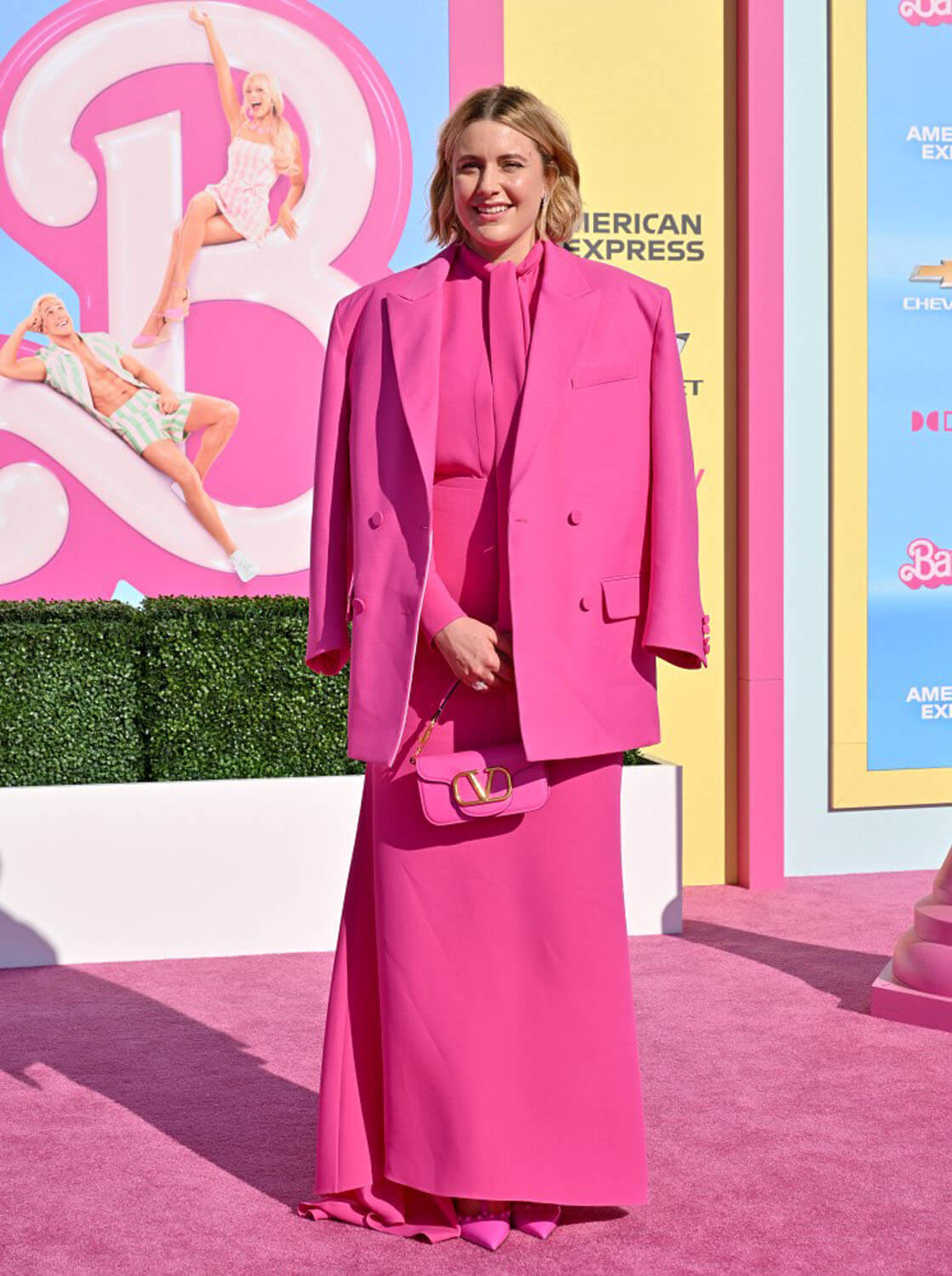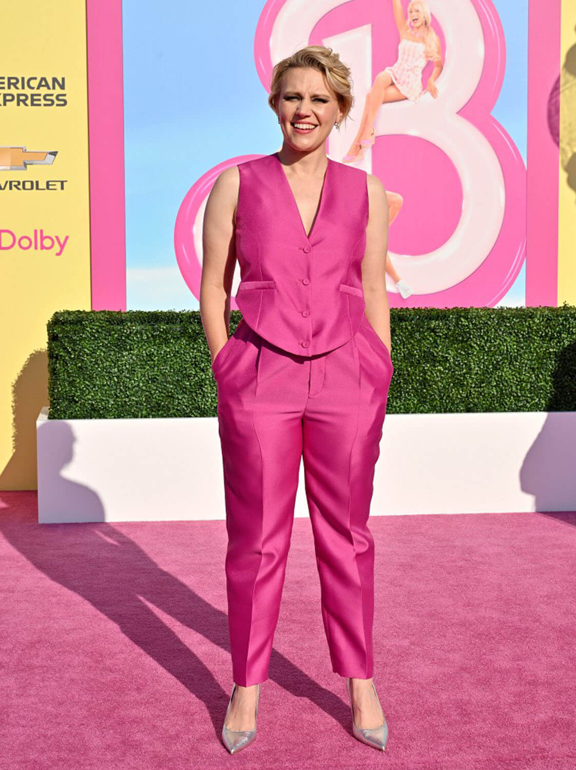 Of course it wasn’t just Margot Robbie holding it down for Barbie at the Hollywood premiere last night. Margot and director Greta Gerwig were joined by other Barbies and some Kens and as you would expect, there was a lot of pink. America Ferrera went for a lighter pink option while Greta went full fuchsia in an oversized blazer over a long dress and collar and even Kate McKinnon leaned into the Barbiecore for her look – I can’t remember ever seeing her in pink in real life, outside of playing a character.