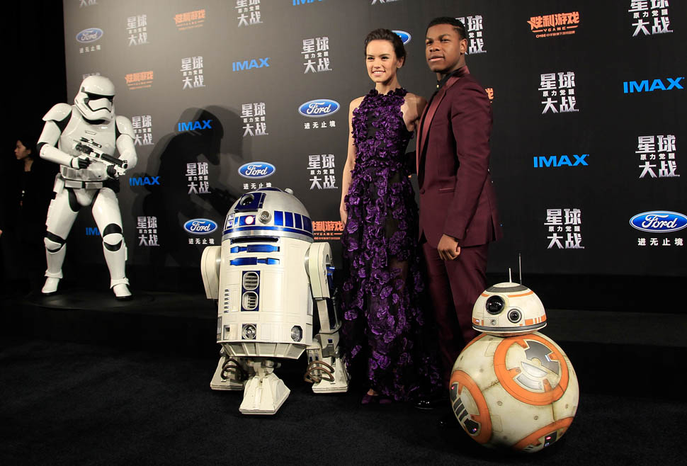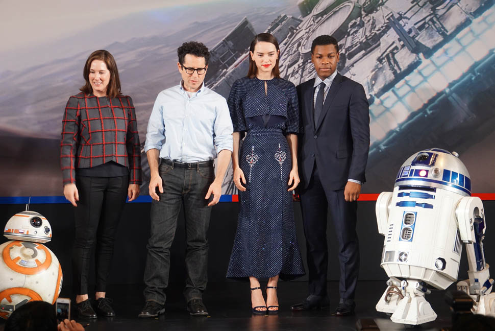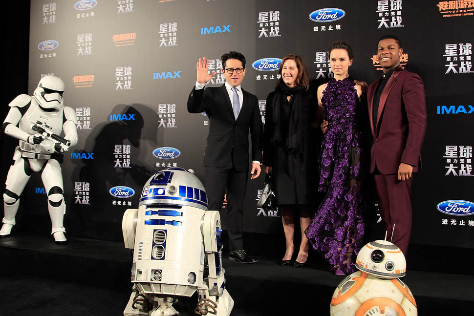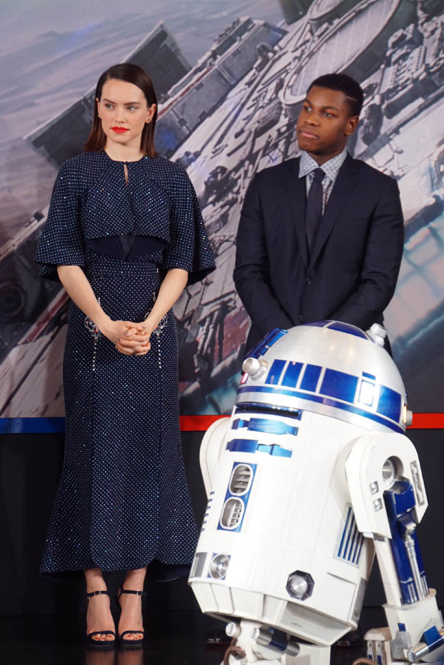 Daisy Ridley, John Boyega, JJ Abrams, and Kathleen Kennedy were all in Shanghai on the weekend to start making that Chinese money. I am very pleased that R2-D2, the distinguished and beloved senior statesman of this franchise, was invited to come along on this trip too. Oh. Did you just feel a pang of guilt there?