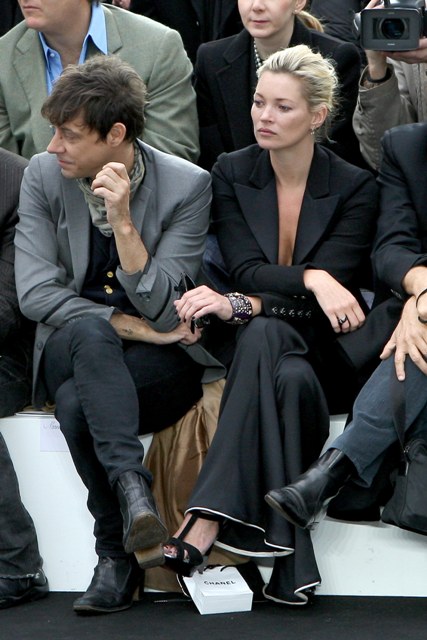 And Kate Moss in very long pants with Jamie Hince looking less busted in the face than we’ve seen her lately sitting front row at the show, killing it in her suit. Always when she’s in a suit. Her cuff makes my life.