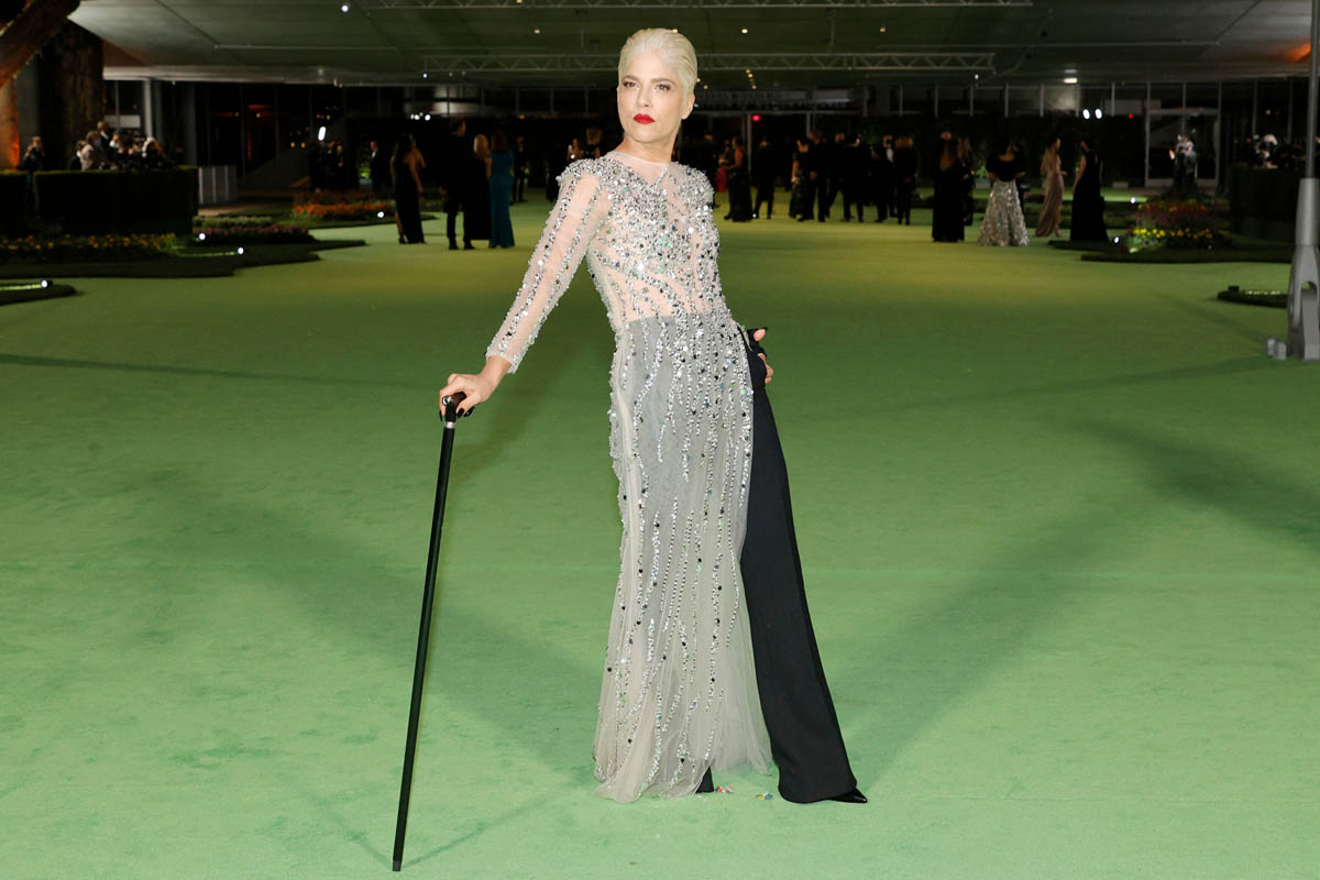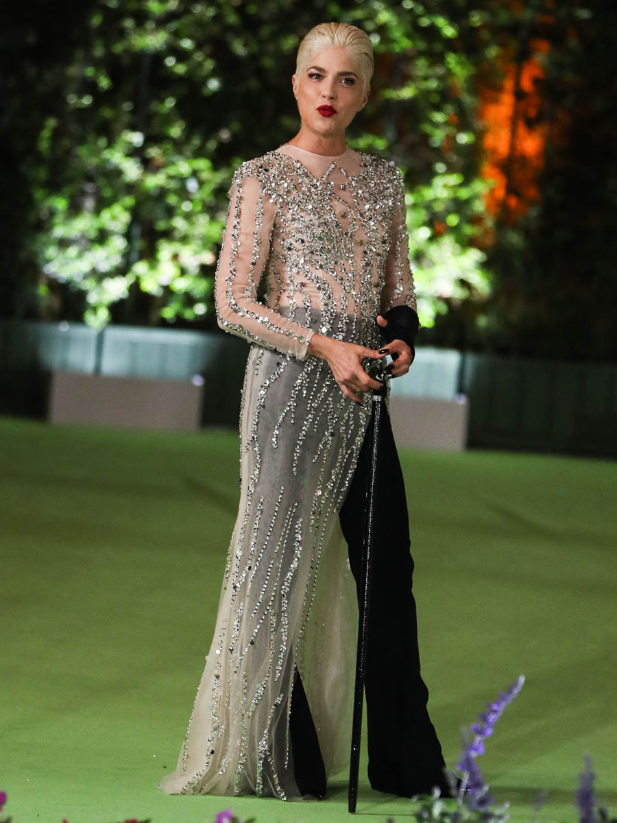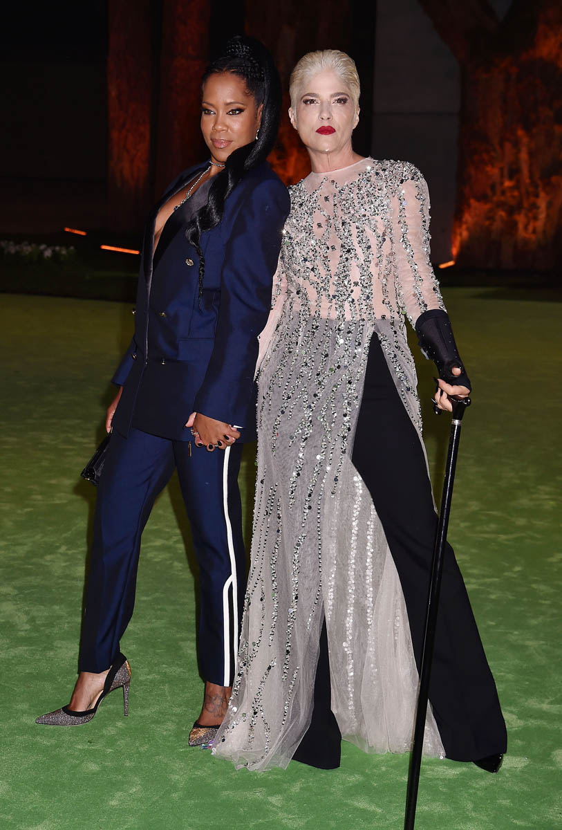 SO great to see Selma Blair there with her dramatically bleached hair and red lips and her cane. Selma loves being a movie star. She loves a major fashion moment. She loves a red carpet moment. And it’s amazing that after all she’s been through and is still going through, these moments are still a part of her life. She’s wearing a dress over pants, a look that Maria mentioned recently in Celebrity Social Media that’s making a comeback. We’ve seen it a few times recently on red carpets and that should continue through award season.