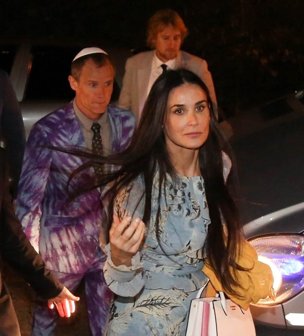 Oh and Ashton, who co-founded A-Grade Investments with Guy, was seen on the beach with Anthony Kiedis. Did I mention Demi Moore is there too? She was spotted in town buying flip-flops. So that’s at least one set of exes. (I don’t know if Mila is with him, but she hasn’t been seen in any of the pap photos from all the parties.)