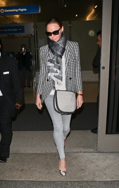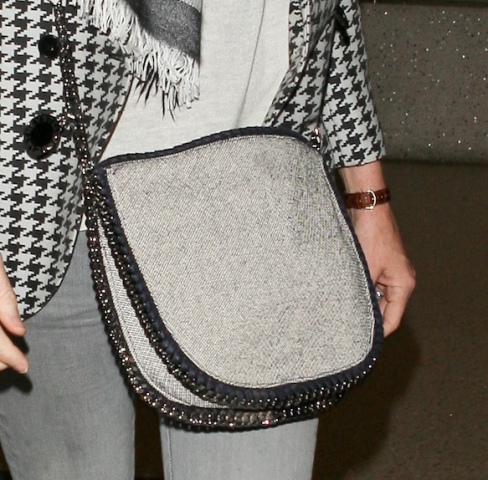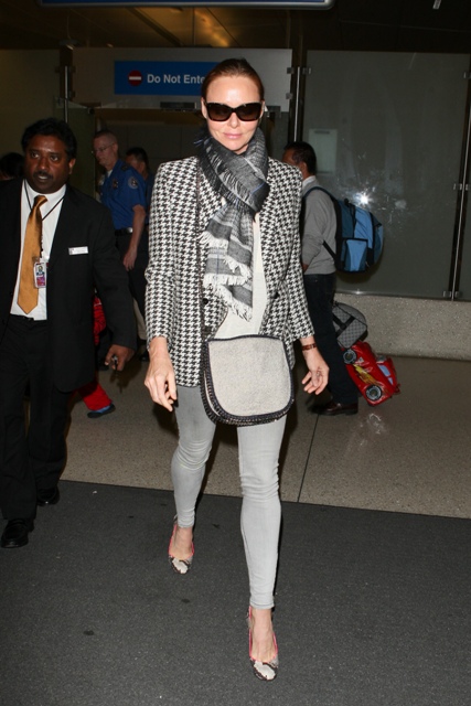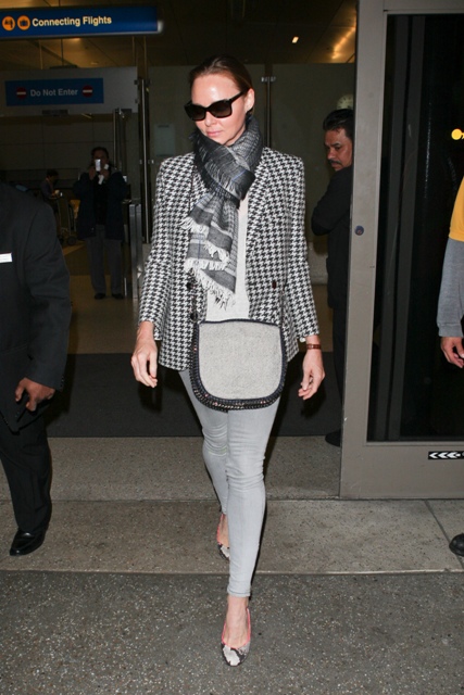 Stella McCartney, who apparently thinks it's really profound when people talk about Nature vs Nurture, arrived at LAX yesterday wearing skinny grey jeans, a great jacket, and goddamn, look at her wicked, WICKED bag.