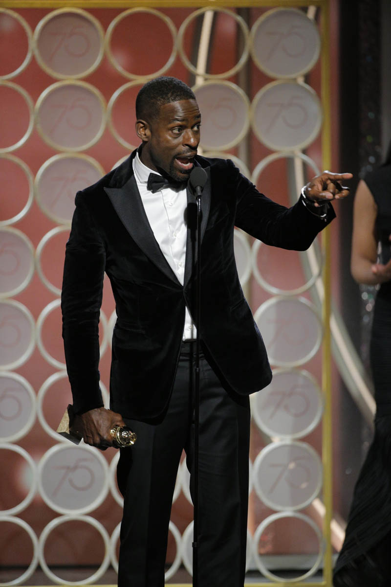 Last night at the Golden Globes, Sterling K. Brown was able to deliver thoughtful, uninterrupted remarks and they were lovely, of course, but Sterling’s victory was also infuriating. With his win, Sterling K. Brown became the first black actor to be awarded the Golden Globe for Best Actor in a TV Drama. The first. In 75 years. FIRST. 75 YEARS. If I sound incredulous it’s because I absolutely am. Discrimination in Hollywood runs deep. It’s systemic. We know this. I shouldn’t be so shocked that black people are still winning awards for the first time and other people of colour haven’t won them at all but I am. Call it naiveté but when someone on Twitter mentioned that SKB was the FIRST, I went down a Google hole because I thought it couldn’t be true. There must have been someone else. Every black actor in a dramatic television series could not have been overlooked, underappreciated and ignored for 75 years. I didn’t want to accept it. Well, it’s true and this time, my shaking fist in the air is directed at the HFPA. How dare they? Isn’t this a cold, hard reminder that Hollywood has not come as far as they want us to think? That along with all their other glaring problems, there’s still the whole racism issue to address? TIME HAS BEEN UP. The HFPA does not get a cookie for finally getting it right this year but I will give Sterling K. Brown his moment because his speech was exceptional.