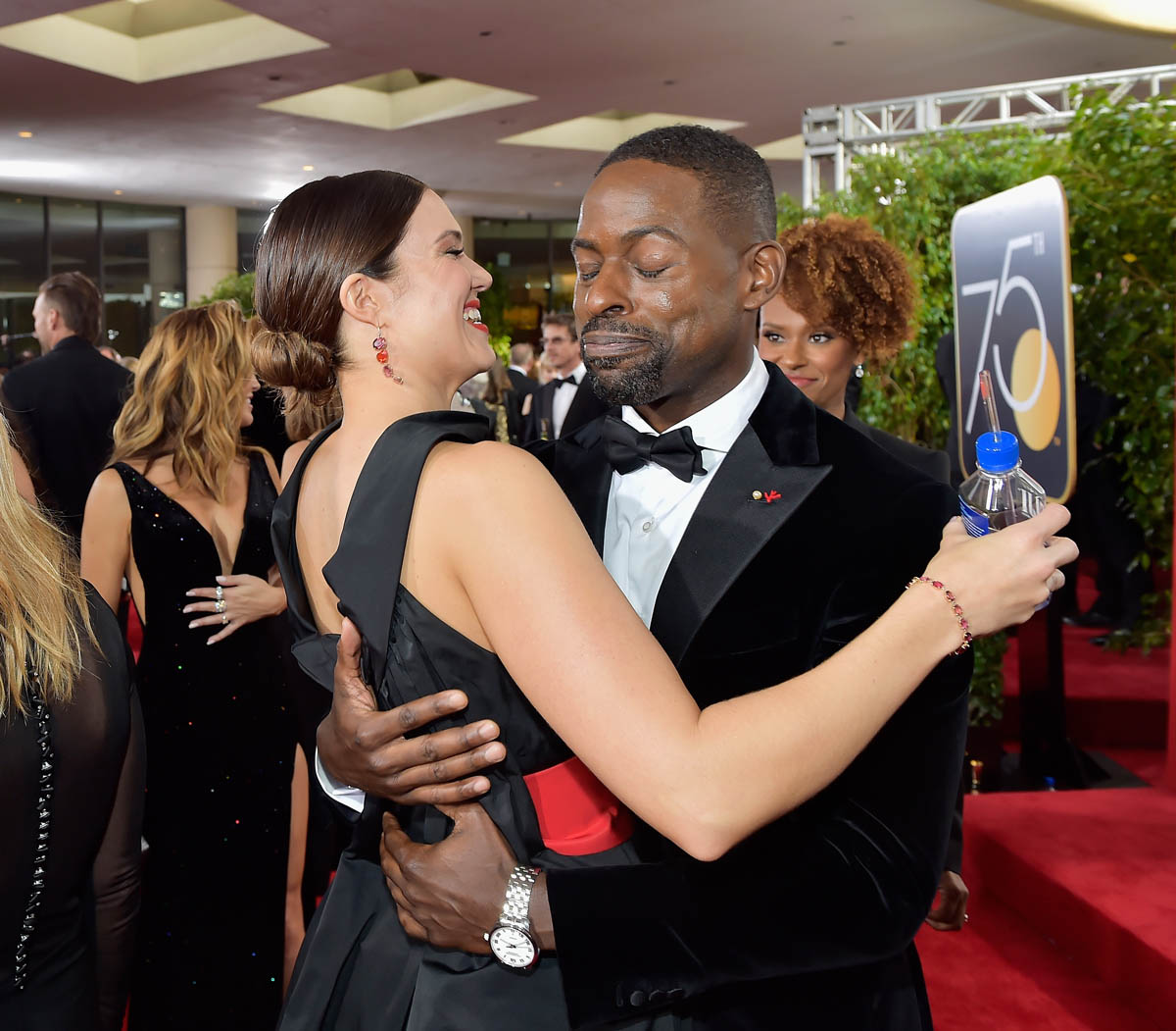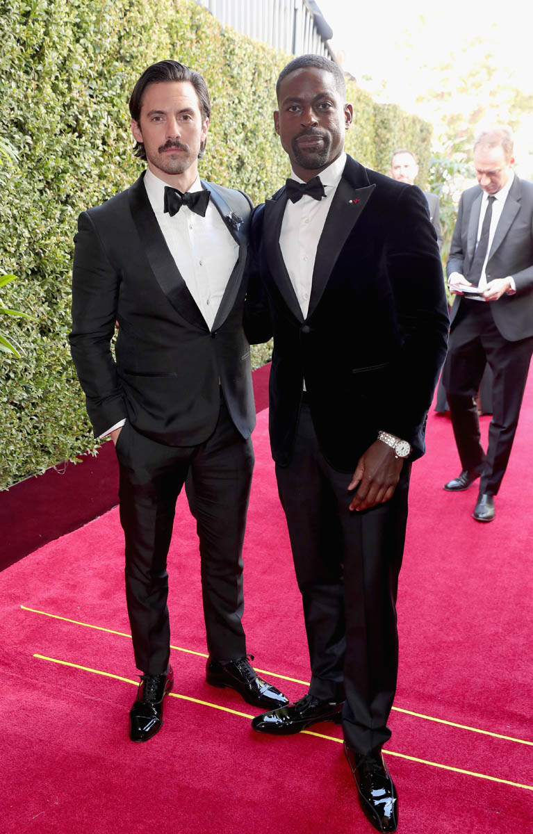 Here’s the rest of the cast at the show. Sterling K. Brown may have had the best cast shout out of the night: “We take turns leading and supporting one another.” (Lainey: teeny tiny complaint lest I be called a hypocrite – he said “my cast”. Why is it so hard to say “our cast”?)