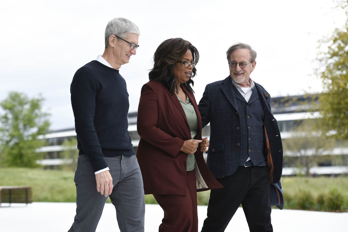 The big Apple unveiling of their streaming plans was sort of anticlimactic. Sure, the event was crazy star-studded—Spielberg was joined by the likes of Oprah, Jennifer Aniston and Reese Witherspoon and Steve Carell, Alfre Woodard and Jason Momoa, Kumail Nanjiani, Big Bird, and more. It was as high profile a coterie as you could ask for to launch your new streaming platform. (So why was it so f-cking BORING? Chris Evans’ Extreme Bored Face was all of us during the livestream.) And there, amongst all the stars and creatives, Apple is throwing obscene amounts of money at to make original stuff for their platform, is Spielberg, who doesn’t think movies released on streaming are proper cinema. Wonder what the guy who signs his Apple paychecks thinks of that. It’s only a matter of time until Apple is competing for an Oscar, and Spielberg is on that raft now. These are his people. He’s not above the streaming bonanza. He’s in it along with everyone else.