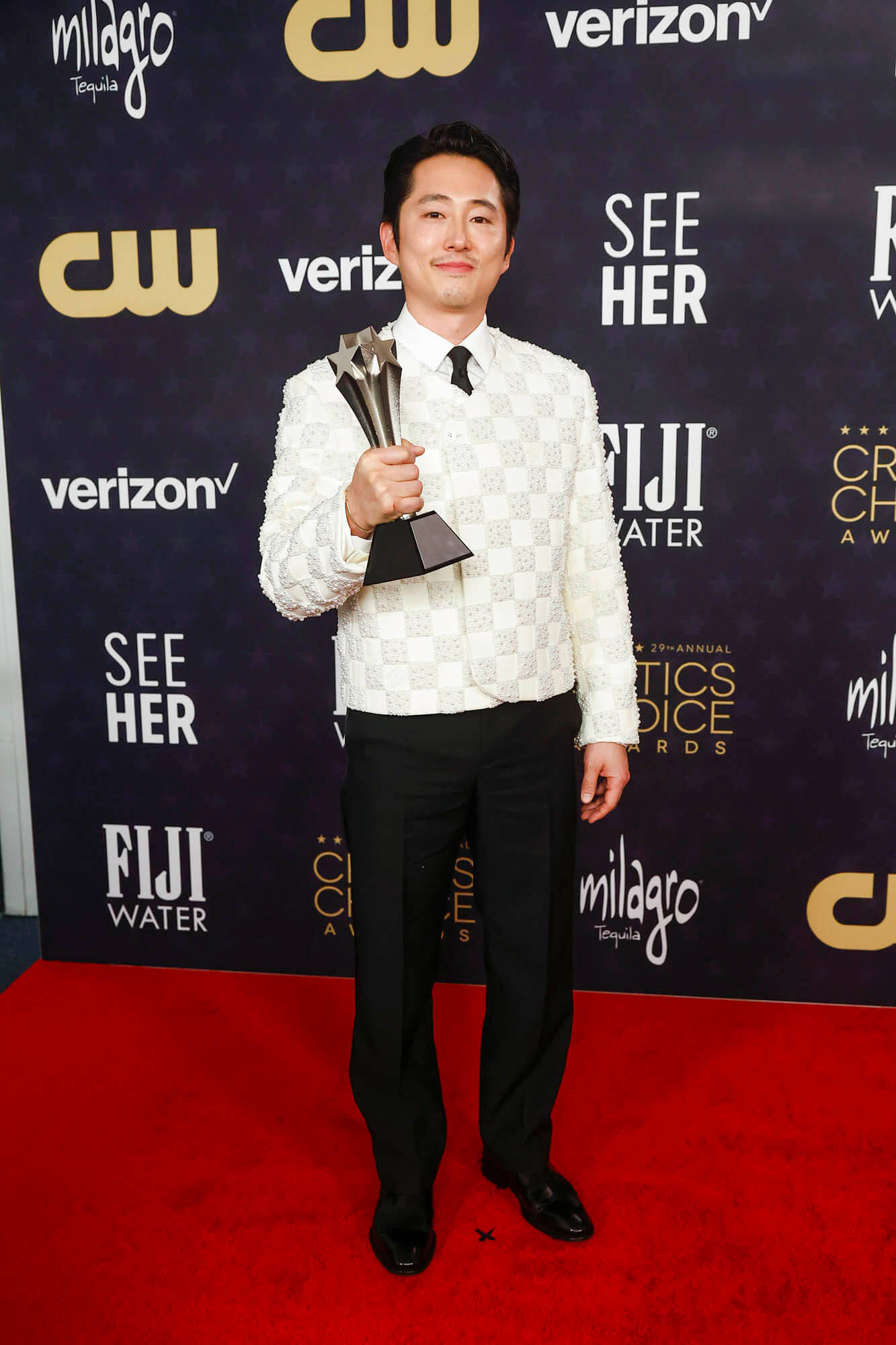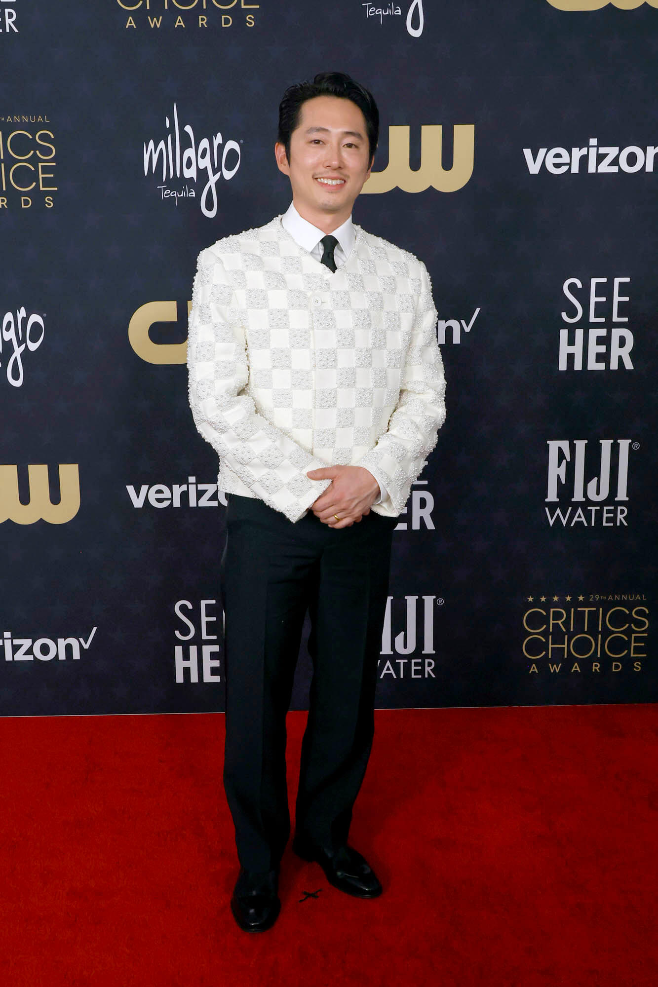 If the last two events are any indication, it’s looking like it’ll go the same way tonight at the Emmys. Which means we can talk more about Beef after the Emmys. Right now, I want to talk Beef fashion. Because I feel like what we saw from both showrunner Lee Sung Jin (Sunny) and Steven Yeun will be way more interesting that what they’ll wear tonight. My prediction is that tonight they’ll go back to formal – standard tuxes, no flair – since the Emmys are considered the pinnacle of television recognition.