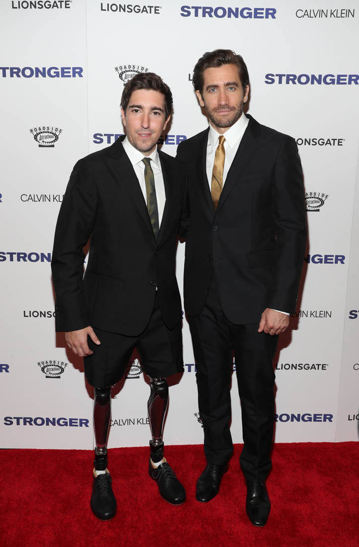 Many of you have written to ask about Stronger and the truth is, I totally forgot to write about it and then the New York premiere happened last night which works out well for me, almost like I had that planned. Here’s Jake Gyllenhaal, with Jeff Bauman, and Tatiana Maslany alongside director David Gordon Green. Stronger opens next weekend. The reviews are solid. But this isn’t a surprise given the talent involved. And Jake Gyllenhaal is never sh-t. As usual, he’s very, very good in this film. Having said that, I don’t think he’s the star of Stronger. To me, the star of Stronger is Tatiana Maslany. And the supporting cast, which actually strengthens the film and doesn’t take away from it. I don’t know that it was meant to be a vehicle to showcase Jake and only Jake. I don’t know that he takes work like that at this point in his career anymore.