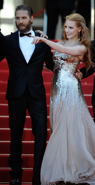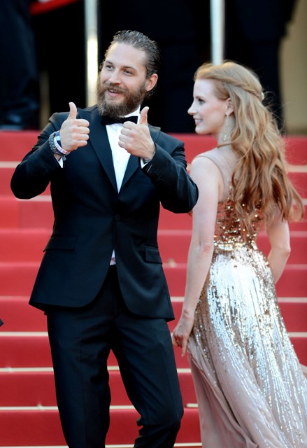 Tom’s fiancée Charlotte Riley was in Cannes with him. Many of you have written to note that Jessica Chastain was being mega flirty with him during the photo calls and the carpets. Since they’re my Notebook now I’d totally be down if that were to develop but I feel like she was like that with all the boys at certain points and not just him. Maybe you were just paying extra sensitive closer attention to him? There was none of that happening at the after-party either. Having said that, word is that Tom and Charlotte came together on a movie set while he was still with the mother of his son. So, you know, he’s been powerless to that kind of chemistry before. I generally find that those who are susceptible to it are susceptible to it over and over and over again.