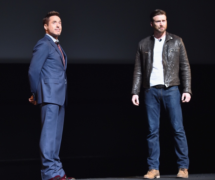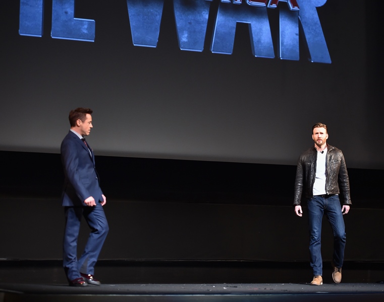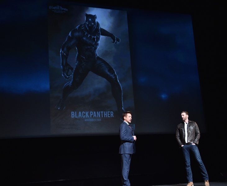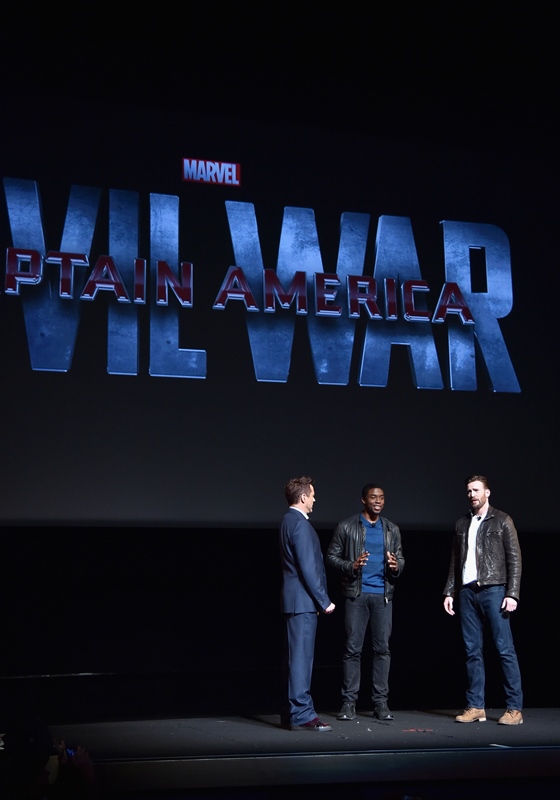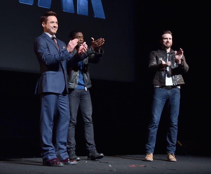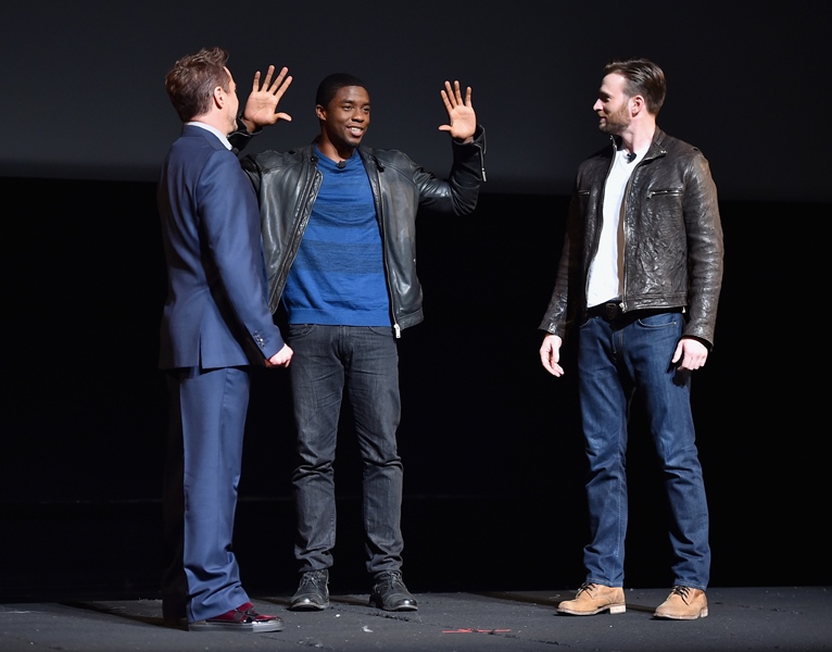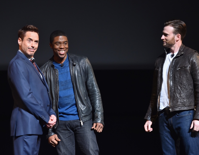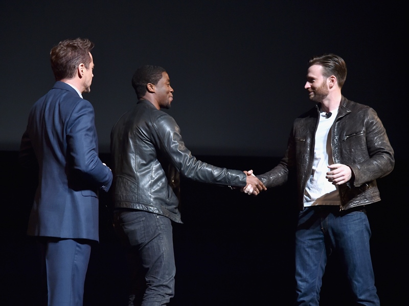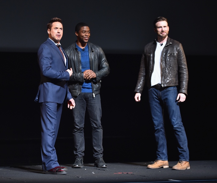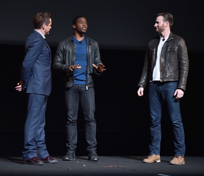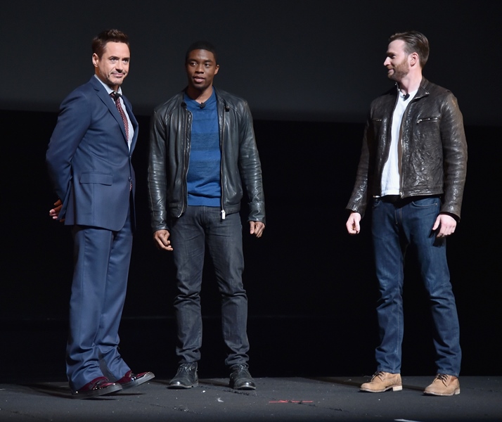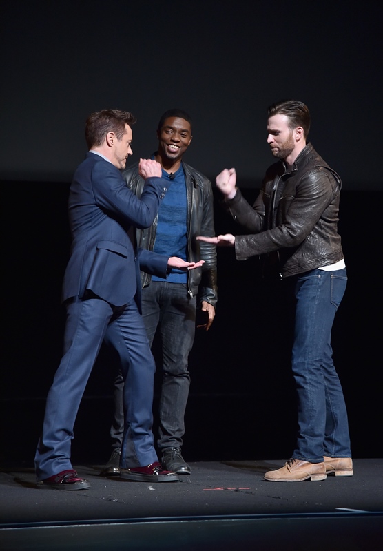 Attached – more photos from Marvel’s presentation yesterday featuring RDJ, Chris Evans, and the new Black Panther, Chadwick Boseman.