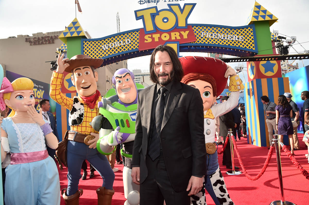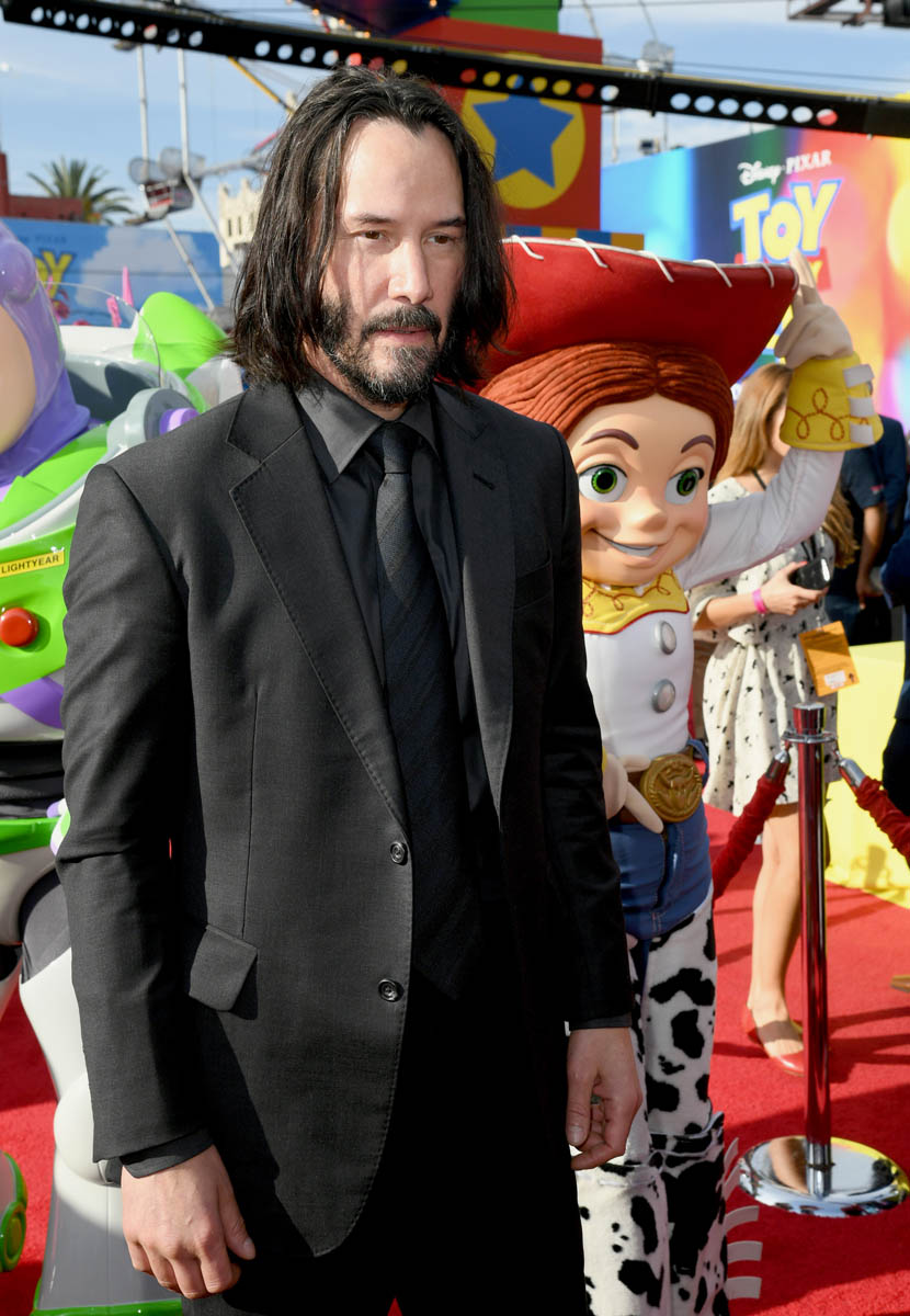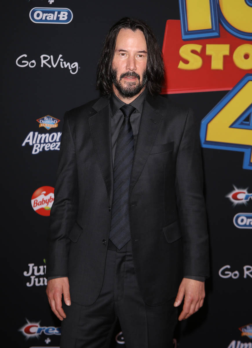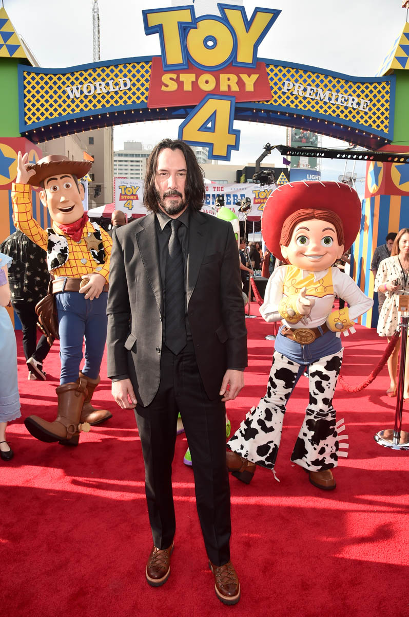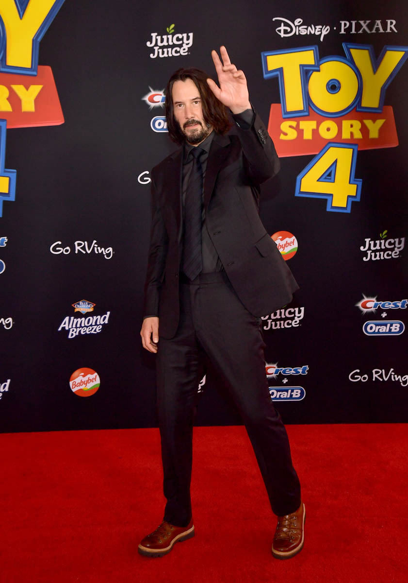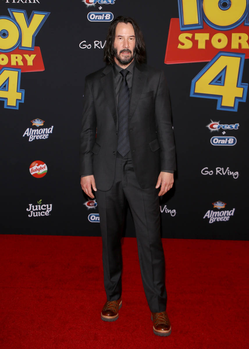 Here’s Keanu at the Toy Story 4 premiere yesterday in Hollywood, not that he looks any different from how he’s looked over the last few weeks at the John Wick 3 and Always Be My Maybe premieres, and at E3. He’s wearing his signature brown boots – although they’re not as scuffed as we’ve seen them, maybe he’s breaking in a new pair. Keanu’s beard is starting to grey but I don’t see any grey in his hair. Do you think Keanu dyes it?