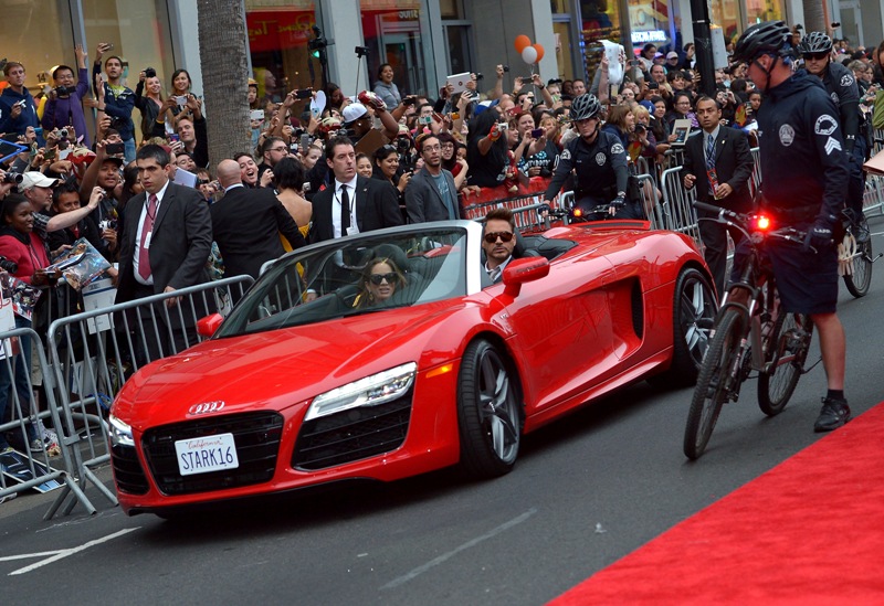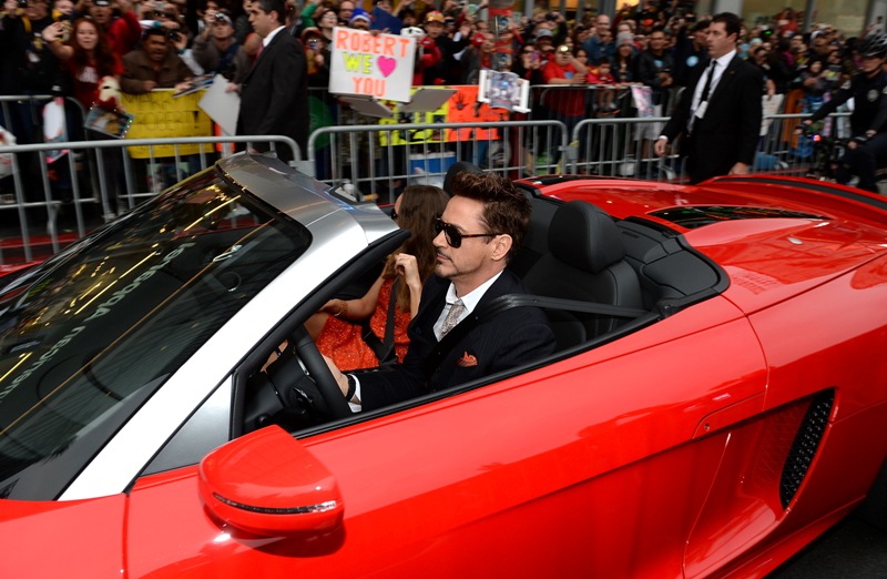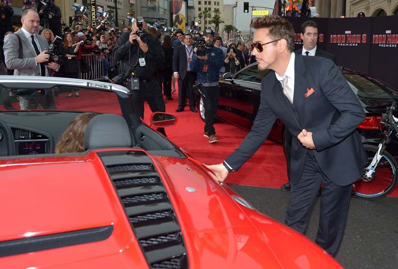 But first... look at this badass arriving in a Stark Audi at the Hollywood premiere of Iron Man 3 last night. He seems almost... relieved, non? It’s been 6 years of Iron Man for him. And an extensive press tour. It’s almost like he’s ready to let it go for a while. They say he’ll be back for The Avengers 2. And he would have to be because how could it be the same? But he’s been hinting that that’s it for him. His contract with Marvel expires after this movie. That could obviously be a big money play. It could however also be, as he told GQ, a desire to explore a different kind of filmmaking. It might be time to see him in a non-franchise film.