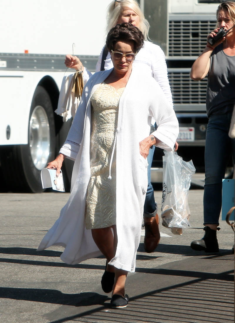 Ryan Murphy’s latest anthology series, Feud, is currently filming, which means set photos. Which means seeing Susan Sarandon and Jessica Lange in costume as Bette Davis and Joan Crawford, respectively. Super into how they look and the only way this could get better is if Judy Davis showed up as Hedda Hopper. Or Stanley Tucci as Jack Warner. Or Sarah Paulson as Geraldine Page. F*ck this cast! If this show sucks it won’t be for casting. The only way it could get better is if Murphy finds some way to shoehorn in Matt Bomer as Montgomery Clift.