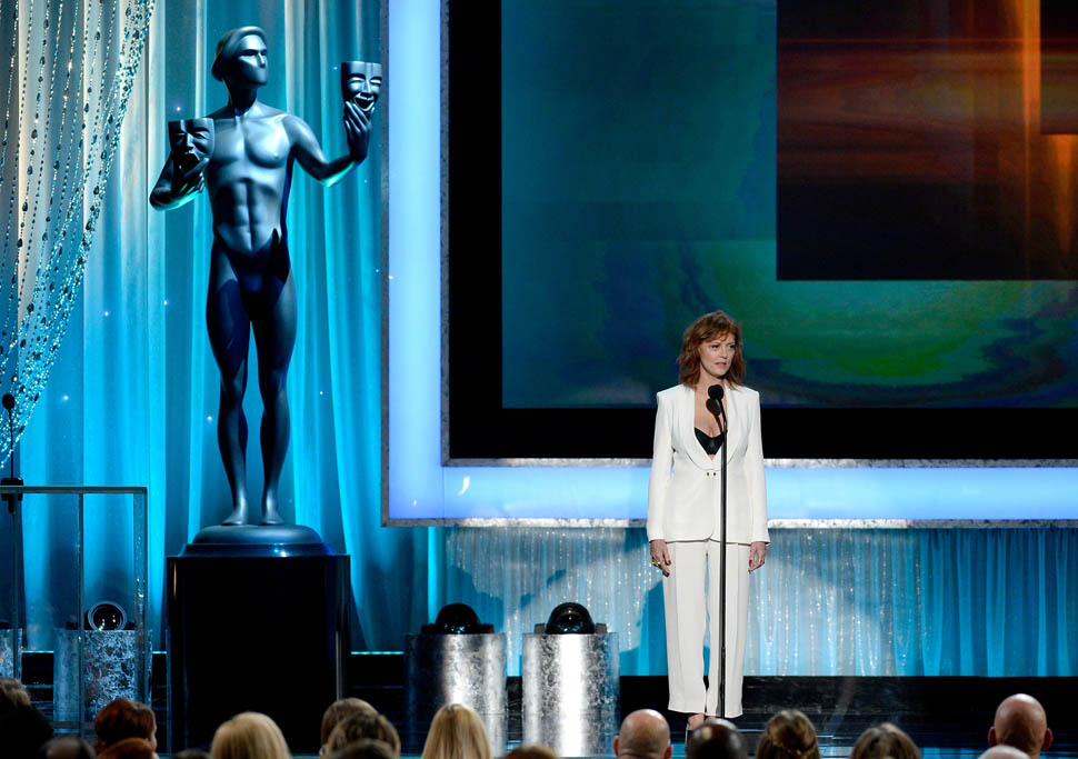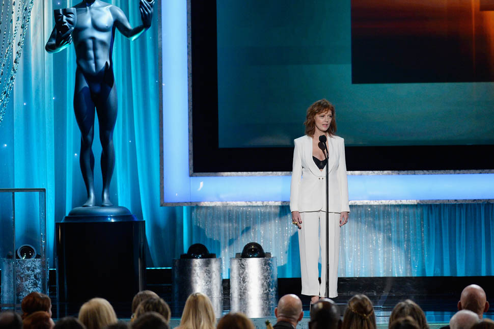Susan Sarandon presented the In Memoriam tribute at the SAGs on Saturday night. She wore a pantsuit with a bra underneath. And some people were pissed. Some people also slagged her for how her tits looked which confuses me because they look great, don’t they look great?