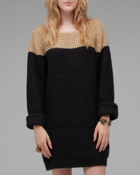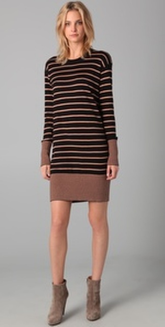 You’re right, B, sweater dresses are a great way to go when you want something easy and comfortable. Pair it down with leggings and some knee highs boots or ankle booties and it’s a really pulled together look. So I’ll breakdown a few options based on some trends for this season.