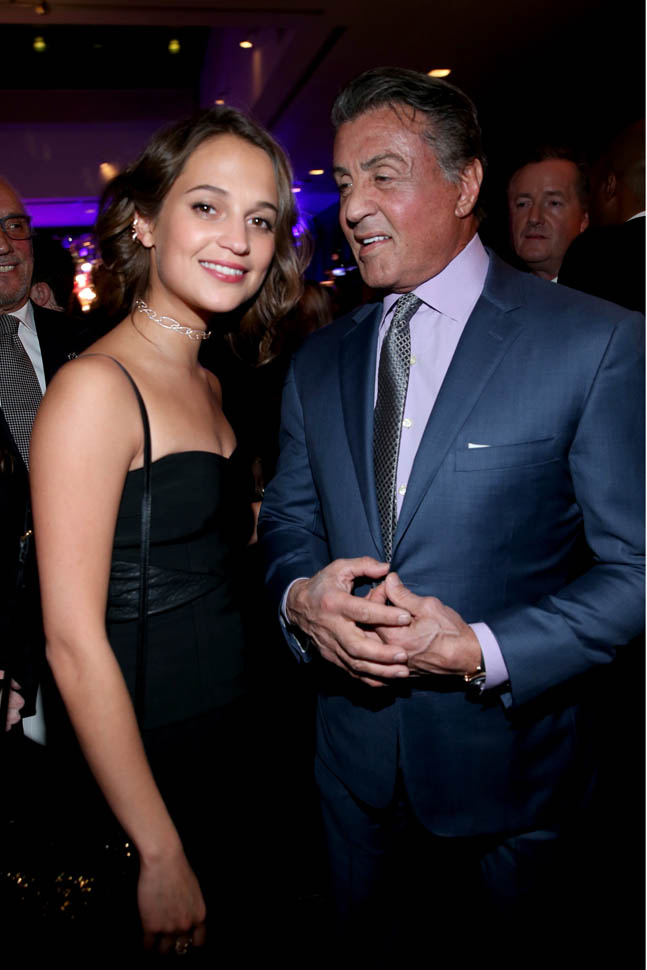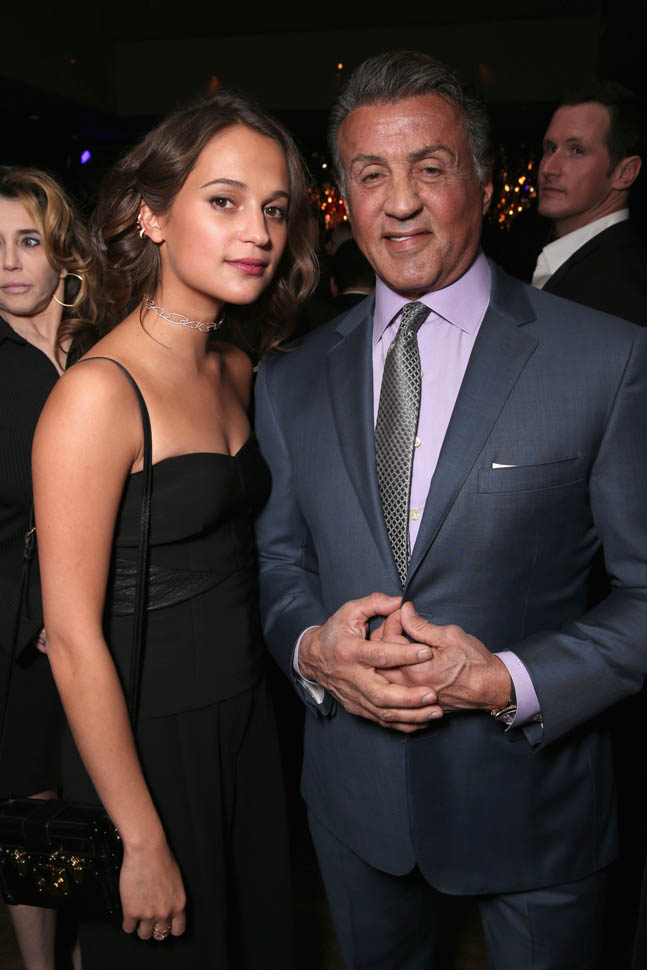 You’re looking at what could be the Best Supporting Actor and Actress at the Oscars on February 28th. Sylvester Stallone and Alicia Vikander were both at the Oscar Nominees Luncheon yesterday and then at The Hollywood Reporter party afterwards. Sly seems to be in the lead right now in his race but there could still be a surprise. If he wins, I really hope he works on his remarks. It’s been fumbly so far.