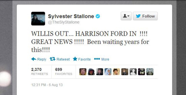 Anyway, Sly is now working on the third and he petty-tweeted two messages out yesterday about the casting process: