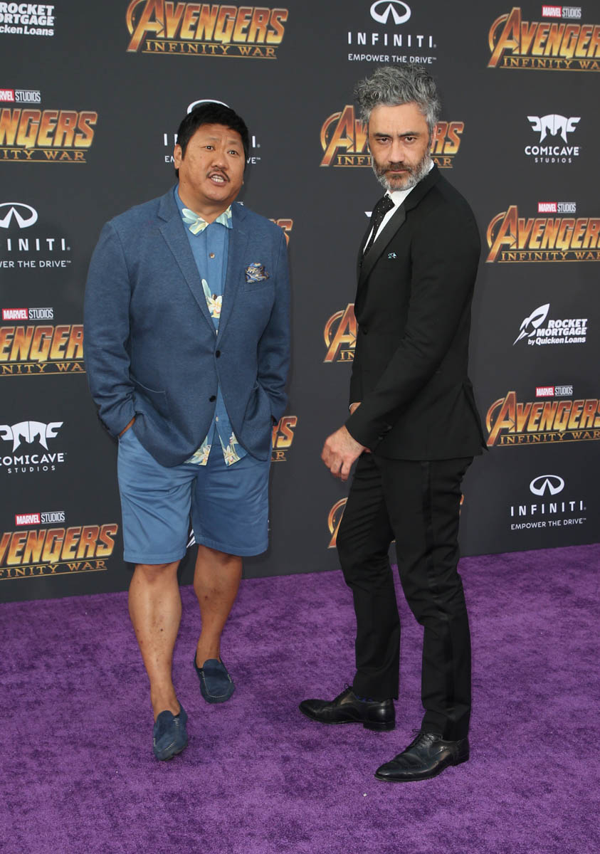 But Waititi is in the Marvel family now, so he was there, lighting up our lives and the Infinity War premiere, in a relatively low-key suit—not his night, so no need to dominate the carpet—hugging it out with Paul Rudd. Recently, Kathleen, who keeps stepping on my tail like I’m not going to notice, wrote about the Paul Rudd Hotness Litmus Test. For me, it’s not about whether or not Paul Rudd is hot, it’s that he has never and probably will never let us down. He’s reliably funny and dependably pleasant, and it’s always nice to see him. Kathleen, who is being the literal worst right now, writes about this like it’s a bad thing. But after we’ve seen several beloved celebrities fall down the sex pest well, it’s a relief to still have celebrities like Rudd, who are just fun and funny and doing nothing creepy. Does Paul Rudd have to be your fave? No. But he’s good to have around.