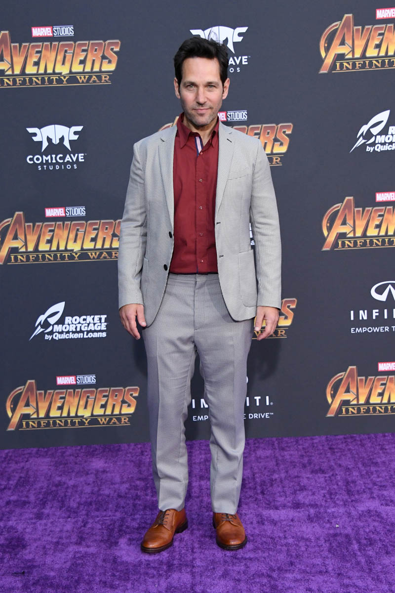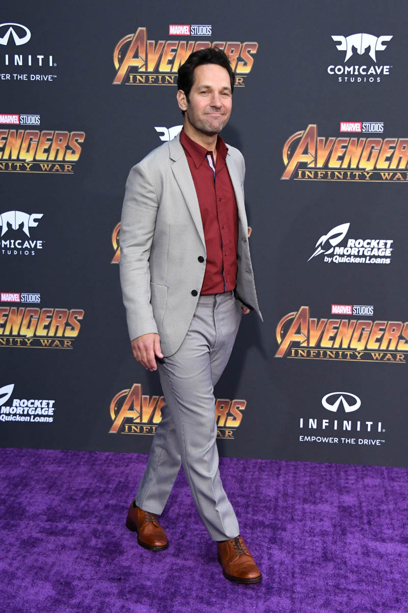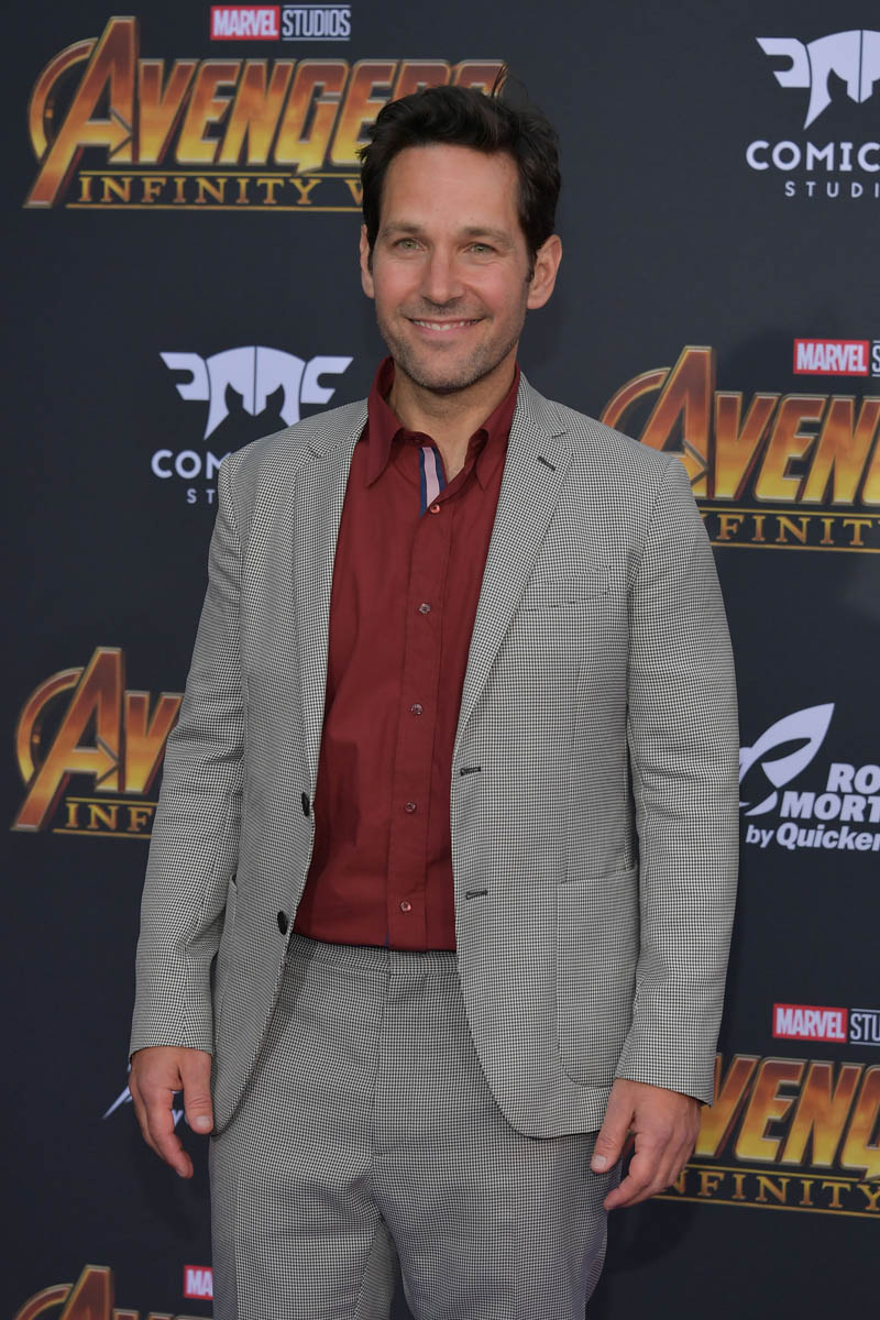 Rudd, by the way, has actually de-aged approximately three years between the Civil War premiere two years ago and the Infinity War premiere last night. At this point, I don’t think he’s bathing in unicorn blood, I think he’s straight up sucking the marrow out of unicorn bones. Why isn’t he aging?! This is the research science should be doing.