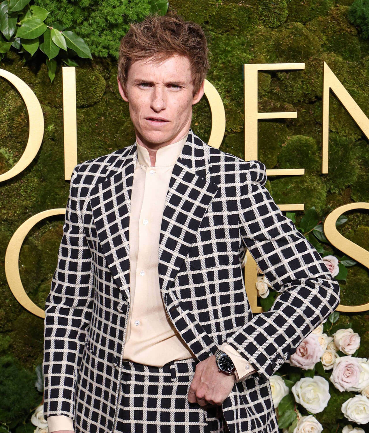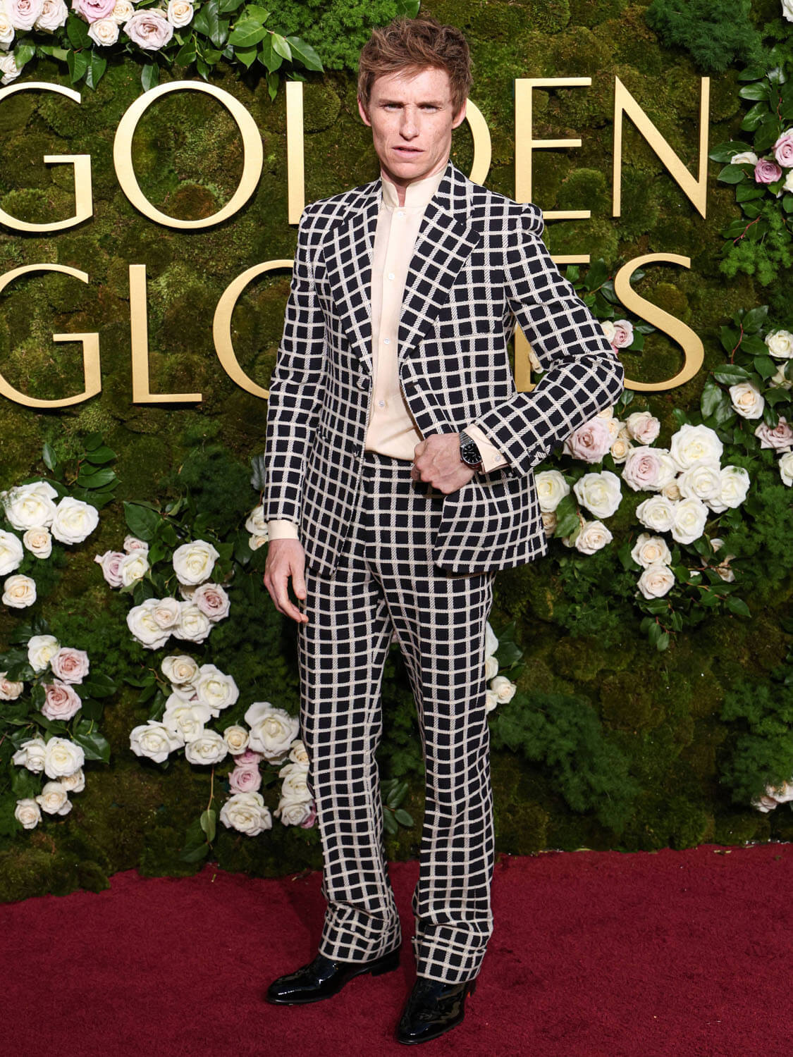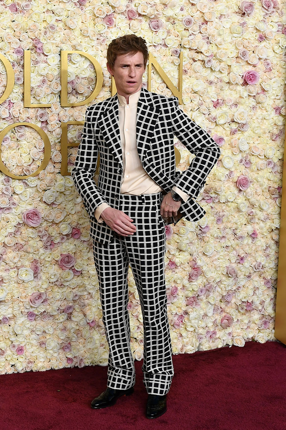 Eddie Redmayne also has a tilted take on monochrome with his checkered suit – I’m inclined to call it windowpane, but I believe in that case the ‘windows’ are supposed to be larger? Patterning experts, care to weigh in?