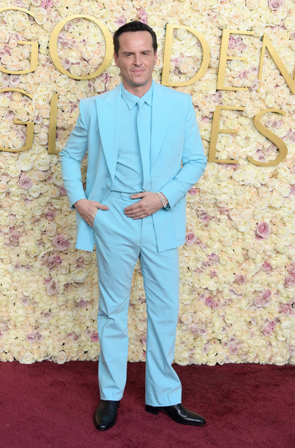 Then we come to Andrew Scott, whose colour palate is not dissimilar from Jeremy Strong’s – minus, you know, the hat and eyewear – but who said he thought the look was ‘giving Smurf’. You know he was pleased with that, too – like, nobody wears this if they don’t want to be talked about. Which is GREAT! Let’s see more of it! Small digression: One of the great but underappreciated moments in Nobody Wants This was Adam Brody’s character admitting he wanted to be seen as charming and stylish. Shouldn’t be revolutionary, but it still seems new! Let’s work to eradicate false modesty about men’s appearance, or its cousin, anonymity-via-tuxedo!