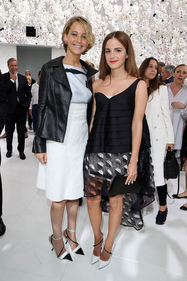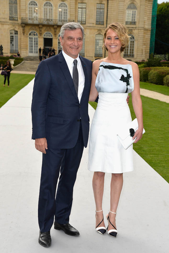 A very tan, very relaxed Jennifer Lawrence, also one of Dior’s ambassadors, was at the haute couture presentation today in Paris. She posed with Sidney Toledano, Dior CEO, and was also seated next to him. Emma Watson was on his other side. I like Emma’s dress a lot better than Jennifer’s. But I also love Jennifer’s tan. She’s wrapped on The Hunger Games now and has kept a low profile for the summer. Wherever she is, whatever she’s been doing, she’s clearly been outside part of the time.