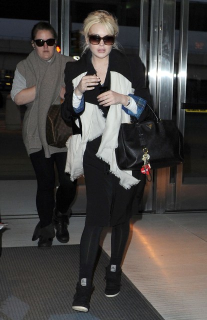Here’s Lohan with her sister Ali at the airport yesterday. If you didn’t know better, that would be a fried out mom and her teenage daughter, right?