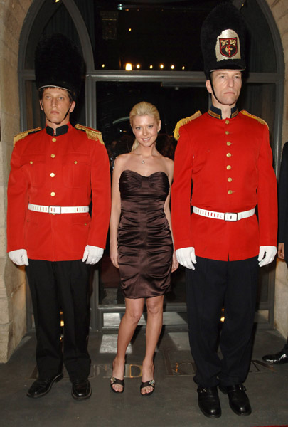 My affection and sympathy to MK at DListed.com whose morning was ruined today because Tara Reid’s recent surgeries have rendered her halfway decent, sparing her from the kind of venomous but hilarious ridicule that is Michael’s trademark. As you can see, Tara’s improvement is remarkable and she proudly showed off her upgraded iteration last night at the Lloyd Klein opening in LA – she looks lovely, non? Unfortunately for Tara, “Lovely” for her has its limits, and while Tara in chocolate strapless might have a slight edge over the Mall Girl from earlier this week, the absolute cut off for a gal like Tara is the State Beauty Pageant – 2nd runner up. Not the one who gets to go in the event the real winner gets hit by a bus or takes a few porn shots, but the one who gets the shaft, who just misses the taste of glory, the moderately pretty girl who will go back home, marry the town pharmacist, have babies, just to put her daughter 10 years later in those creepy song and dance competitions where they all wear too much makeup and act like adults, attracting child perverts in the process. I’m not trying to mean or anything…I’m just sayin’… Tara Reid squandered what was. And now that she seems to have made a partial recovery, marriage might be the best option available, don’t you think? Source
