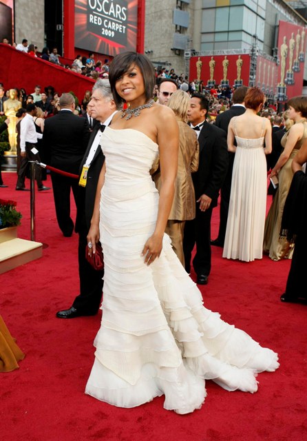 This is Taraji. Taraji so gorgeous. Tara also giving a lesson in posing without having an aneurysm on the carpet. Watching her on the pool feed and then again at the photo wall in front of us, I almost started taking notes on my blackberry. This is how you do. Even if you don’t care for the dress, which I didn’t, this is how you do.