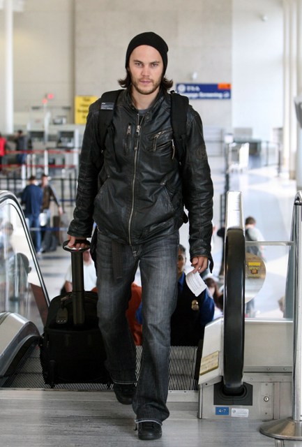These are not the best photos of Taylor Kitsch. The combination of beard and the way his hair is flipped out at the sides… I can’t defend it. At least he doesn’t care though. At least it’s not planned that way.