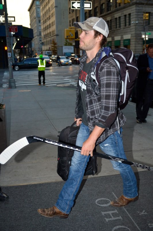 Taylor Kitsch was photographed in New York yesterday with a hockey stick which is normally what Canadians are associated with, and not crack and prostitutes. I feel like Riggs is letting us down.