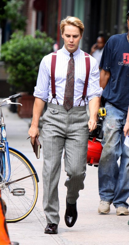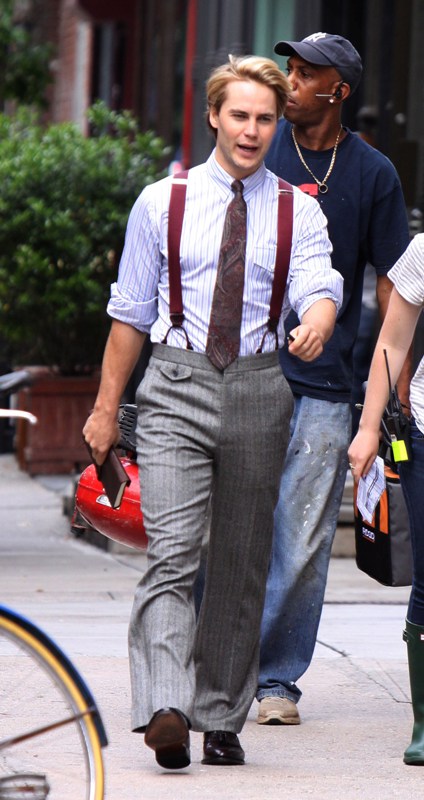A blonde TK, in suspenders!, was shooting The Normal Heart in New York yesterday. This is a great project for him. He’s working with Ryan Murphy and Mark Ruffalo and Julia Roberts and it’s based on the play of the same name to raise AIDS awareness. Very smart career move after 2012. And he’ll also be seen in Lone Survivor, due out in December, starring Mark Wahlberg, which is said to be an award season possibility. Second period, see? Lots of time.
