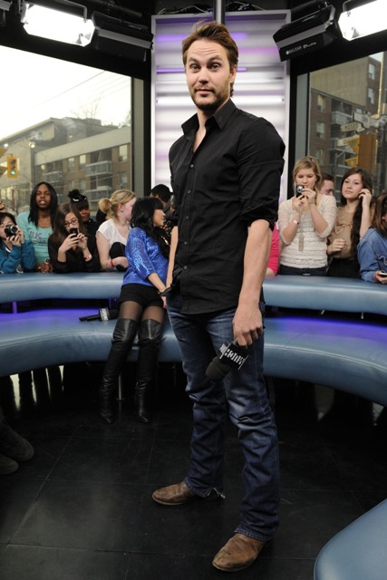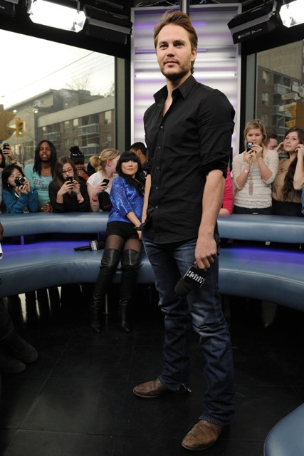 Taylor Kitsch was in Toronto yesterday promoting John Carter. He made the rounds at 299 Queen West which is where etalk is based, where Sasha goes to work every day. TK was scheduled to be interviewed by our show in addition to MuchMusic and several other outlets.