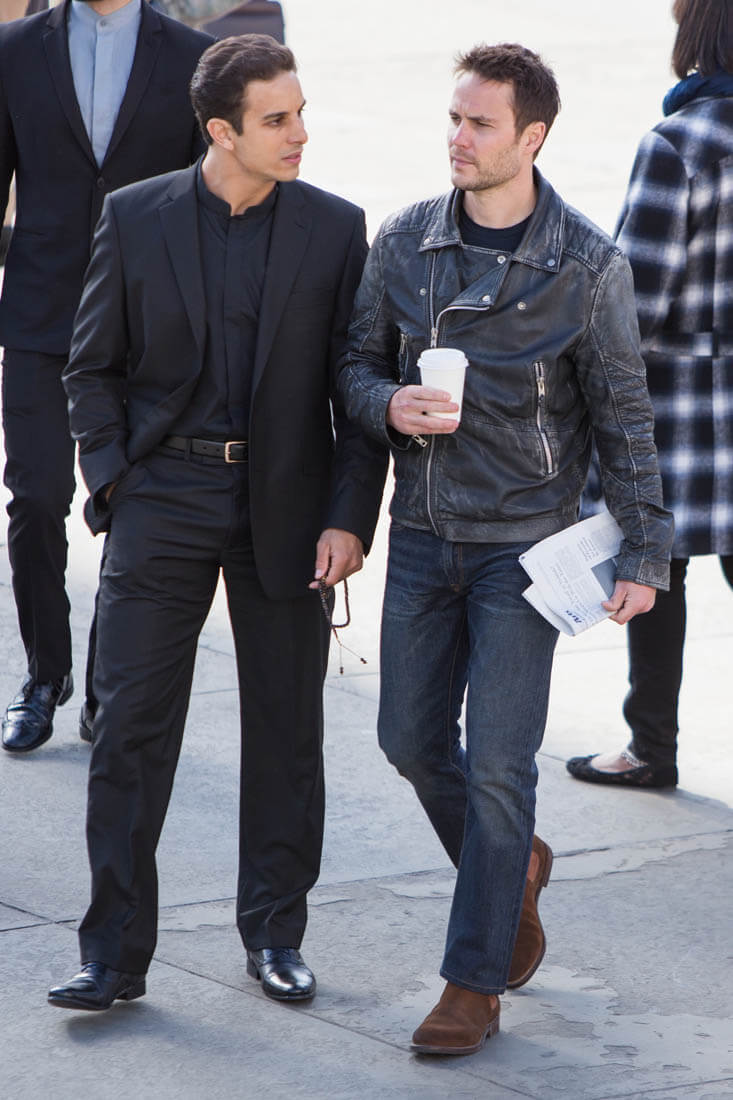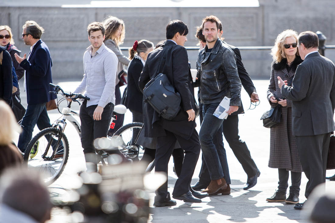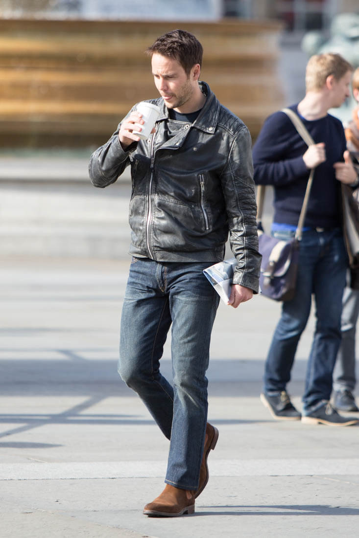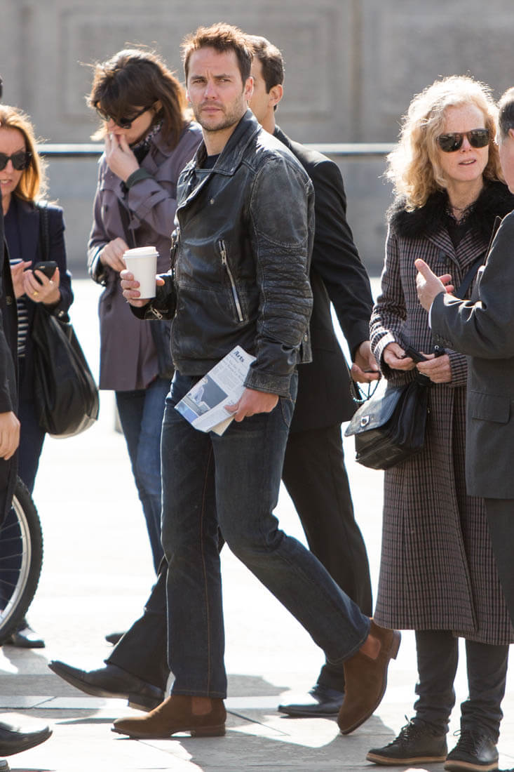 Anyway, here’s Tim Riggins in London shooting a new movie. Haven’t seen Taylor Kitsch around in a while. And I’m happy to see that he’s getting work. Because True Detective Season 2 was sh-t and did not do for him what it was supposed to have done for him. And, as we’ve seen, career-wise for Taylor, there were already a couple of setbacks. But he’s back in a leather jacket and boots (the jeans could maybe fit a little better) and this is a film called American Assassin and Michael Keaton is also in it so… promising?
