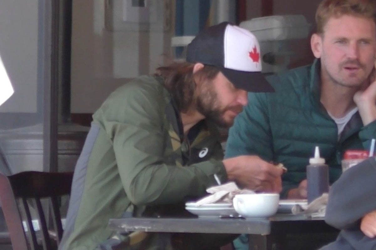 In the previous post about Chris Pratt’s new movie, The Tomorrow War, which has nothing to do with Canada, I made it about Canada because it sounds like they’re playing our national anthem in the trailer. The Tomorrow War comes out July 2. Chris, meanwhile, is already at work on another movie, The Terminal List, also for Amazon Prime. It’s a military action thriller, and Taylor Kitsch is in it too, although yesterday must have been an off day because he was photographed at lunch with his friends, wearing a Canada hat. Seeing his hair like this made me wonder about his character.