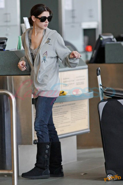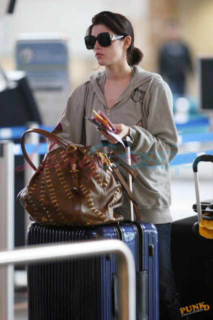 On Saturday it was Ashley Greene and Taylor Lautner at Vancouver airport looking happy and relieved, making their exits with all their gear, now in promotion mode. With the release of New Moon less than a month away, we will be drowning in Twilight for the next several weeks as the actors embark on a massive publicity campaign that, for Summit, will hopefully result in a tremendous opening weekend take.
